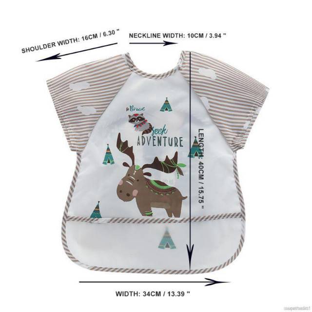 BIB / SLABBER / APRON BAYI LENGAN PENDEK ANTI AIR GAMBAR KARTUN UNTUK MAKAN / CELEMEK MAKAN ANAK