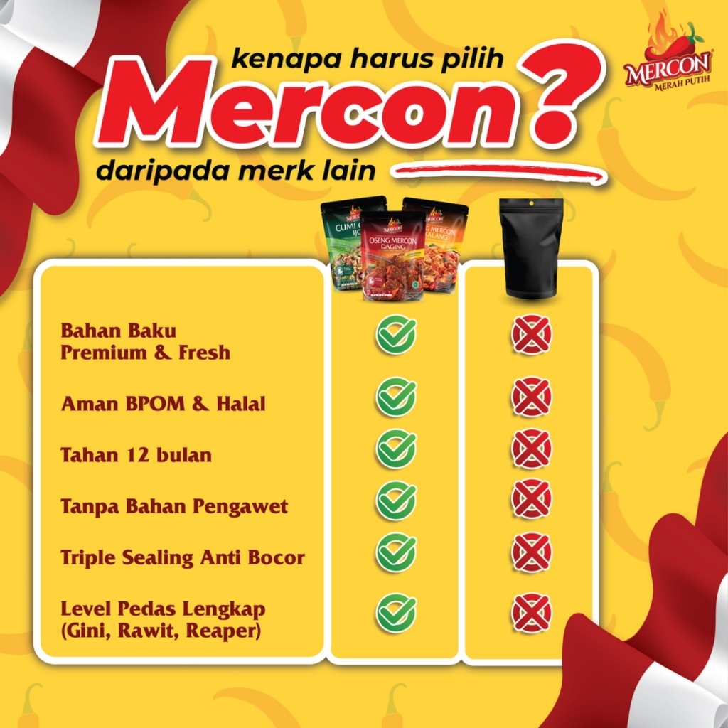 MERCON MERAH PUTIH Paket 3 Pcs - Oseng Merecon Daging/Ceker Camer/Cumi Jerit/ 100% Halal