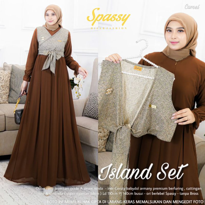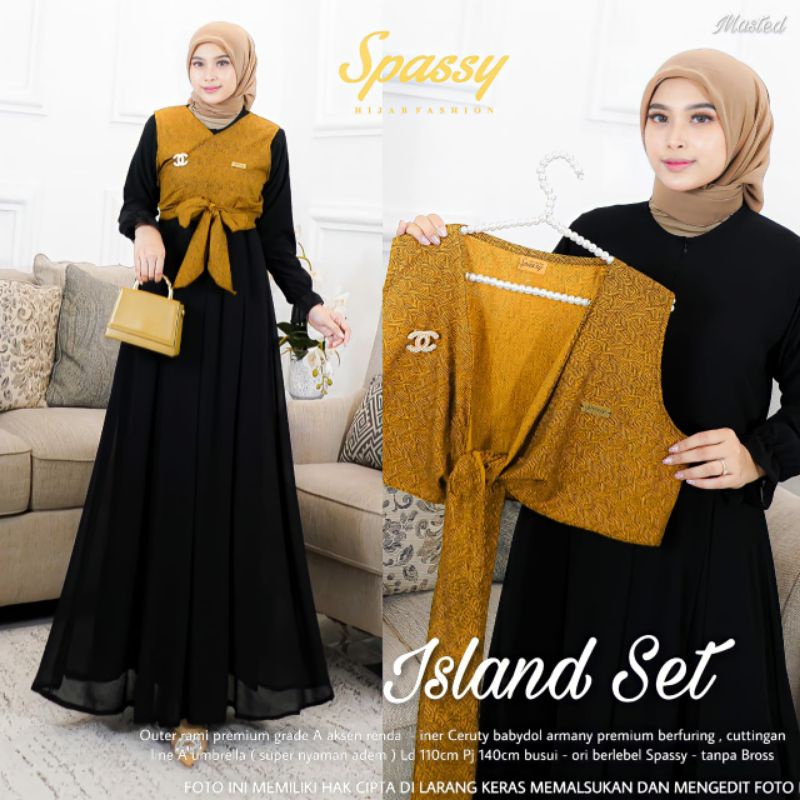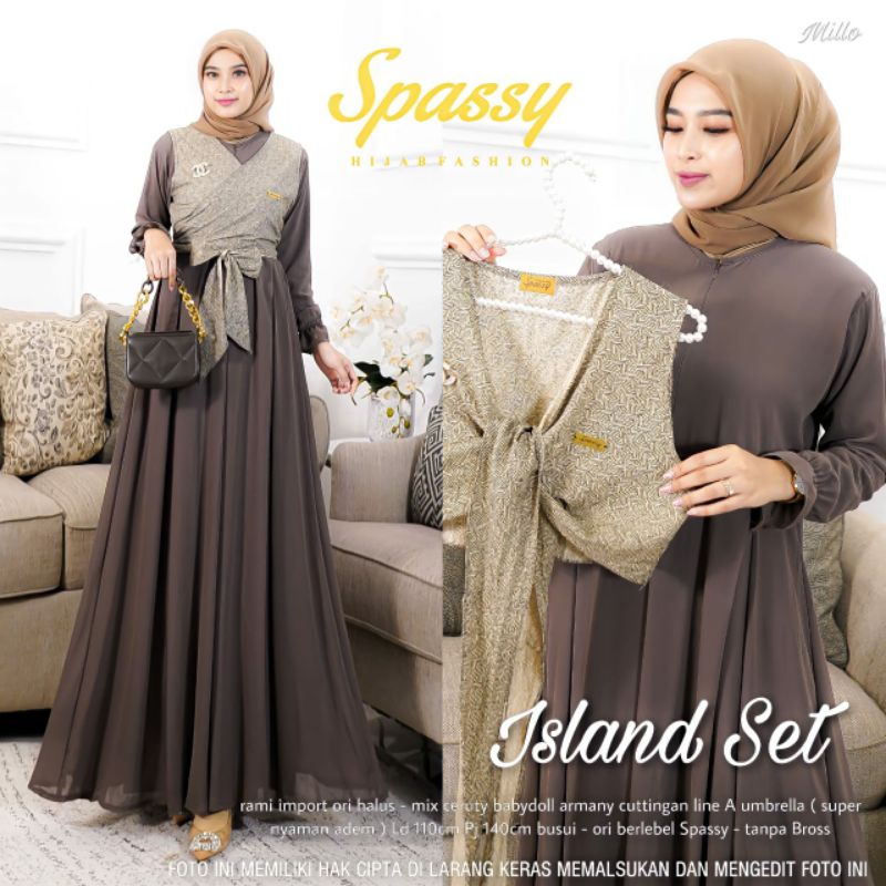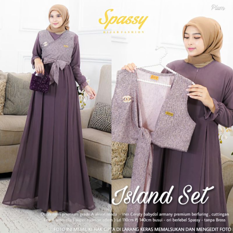 [RESTOCK] ISLAND SET DRESS ORIGINAL BY SPASSY - Setelan Outer Gamis Ceruty Polos Kekinian