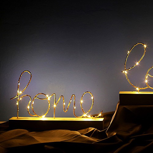 Lampu Tidur Home Hiasan Pajangan Meja Dekorasi Shabby Tulisan Kuning LED | MENDEKOR Ablak