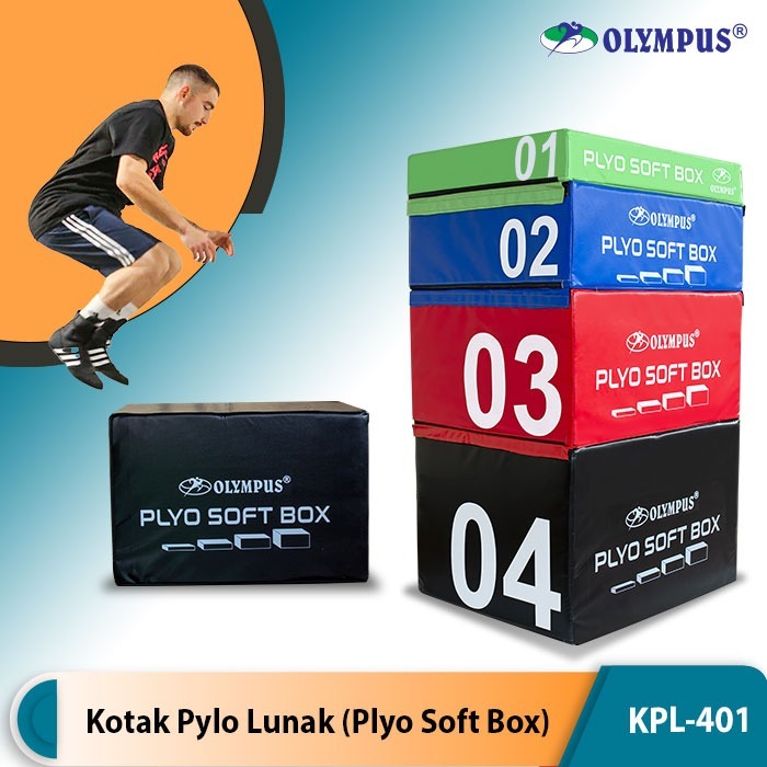 Olympus KPL-401 Plyo Soft Box Kotak Plyo Lunak 4 Tingkat | PU Foam | 15–150cm | Velcro System | Plyometric Training | Plysoft Jump Box Busa Lompat Olahraga bentuk Kubus (Jumping Exercise Gym Fitness)