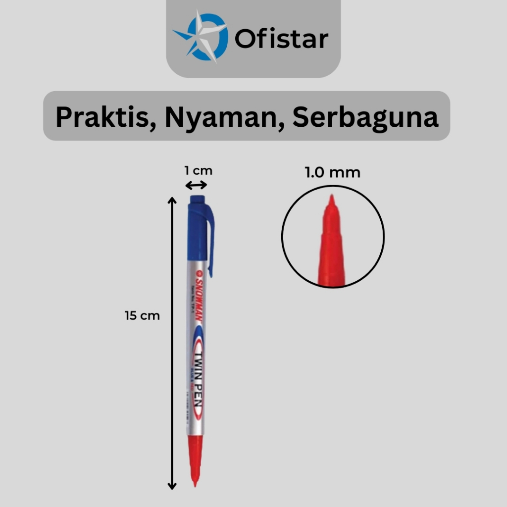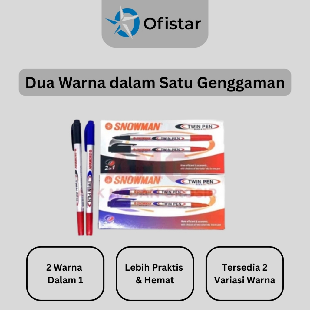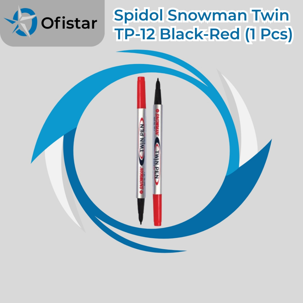 Ofistar - Snowman Twin Pen / Spidol 2 in 1 Dua Ujung & Dua Warna (Hitam-Merah / Biru-Merah) - 1 Pcs