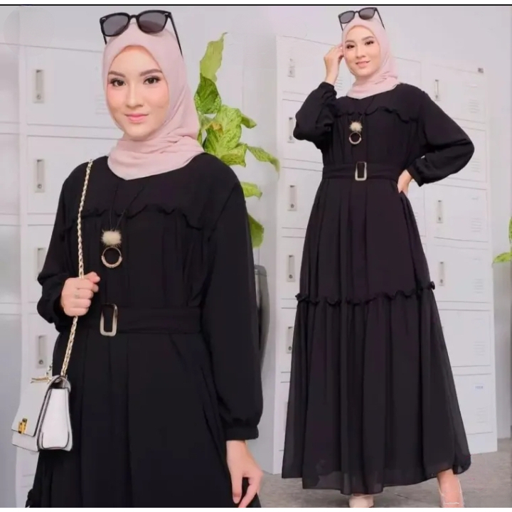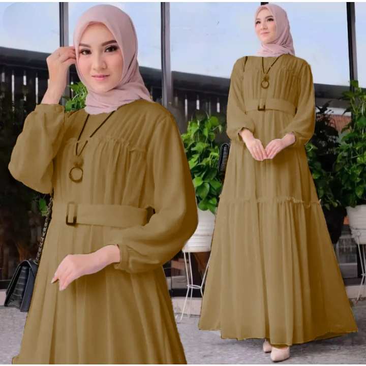 Baju Gamis Lebaran 2026 Wanita kekinian Model Baru SYAKILA MAXY DRESS Gamis Crinkle Airflow murah elegan Fashion muslimah