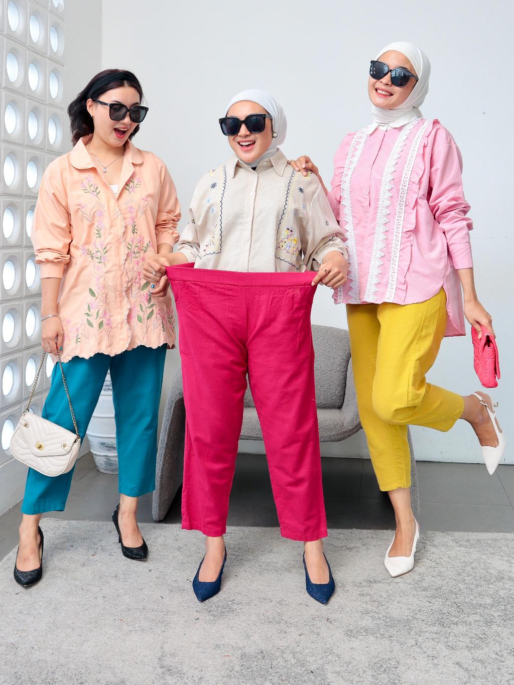 Celana Panjang Wanita Jumbo Kekinian Bahan Linen New Terbaru