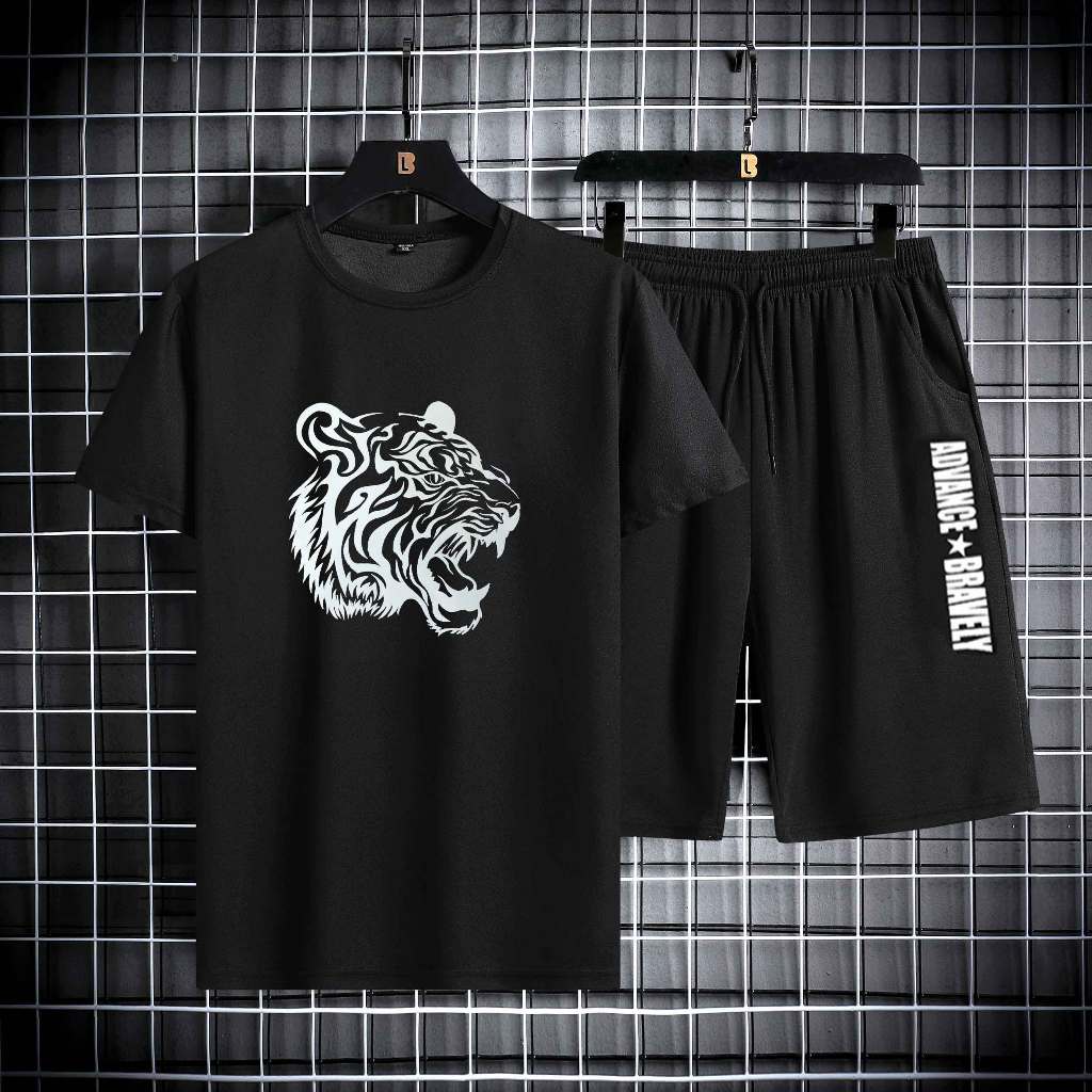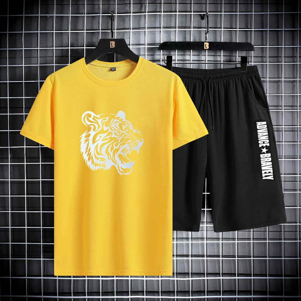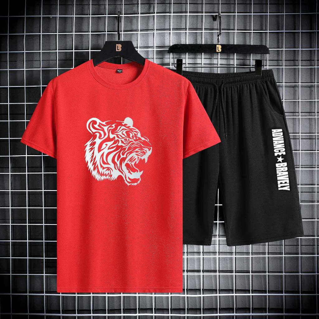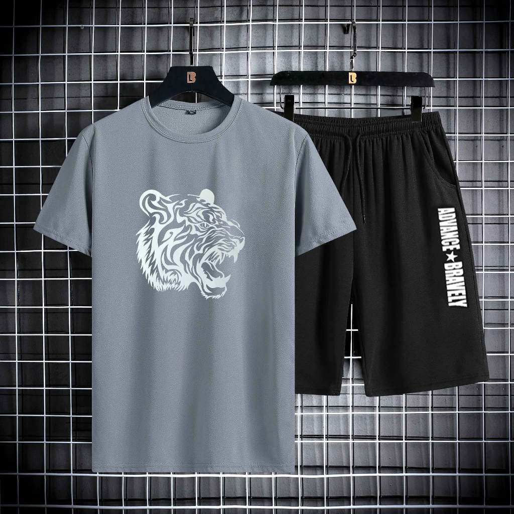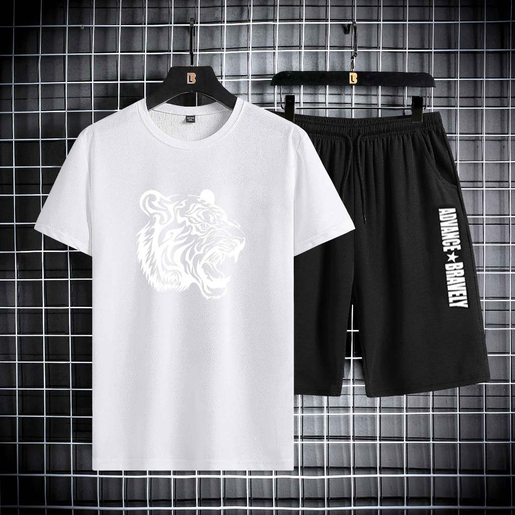 Setelan Pakaian Laki-laki Dewasa Celana Pendek + Kaos Pria Outfit Cowok Keren 1 Set