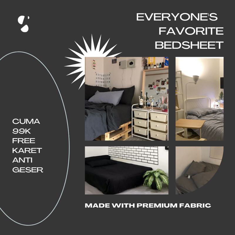 [SEPRAI+SARBAN+SARGUL] New Aesthetic Bedsheet Set Plus Anti Geser - ABU TUA POLOS