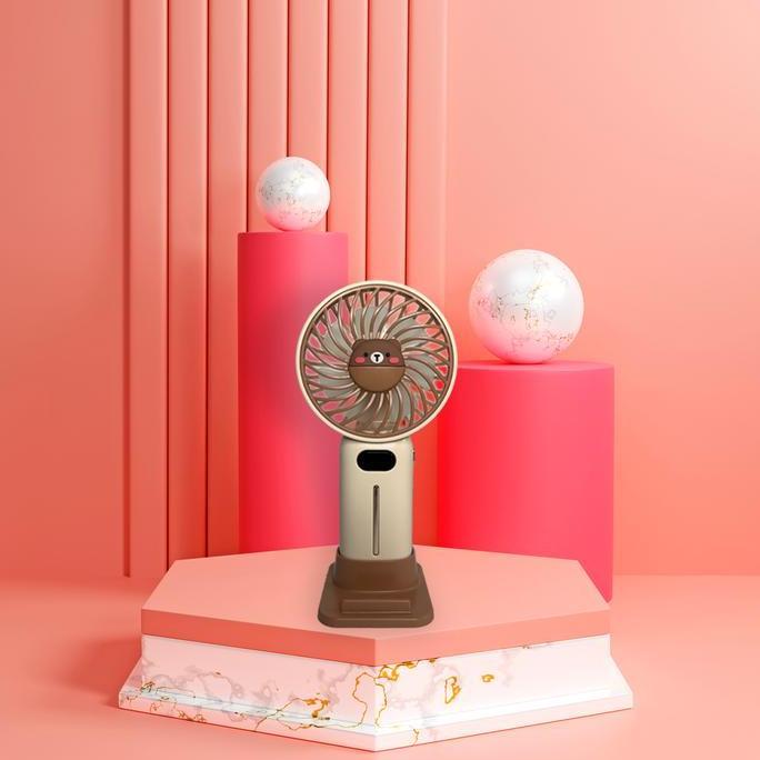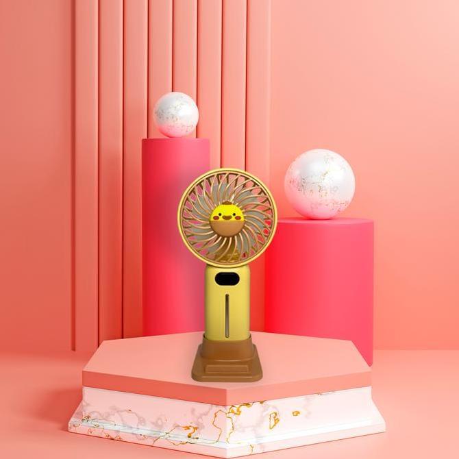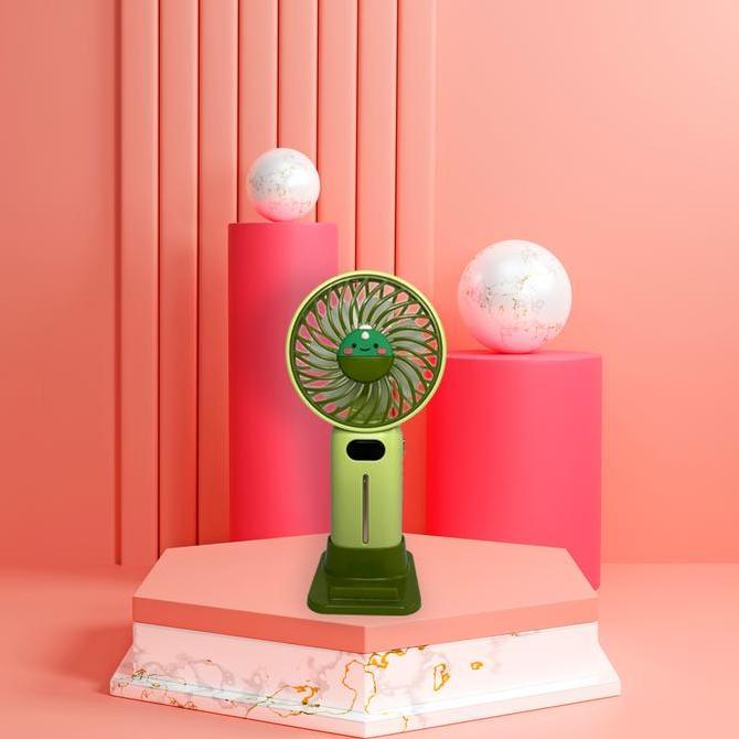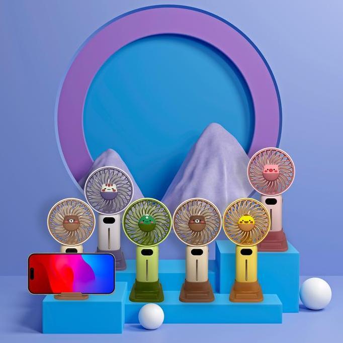 Kipas Angin Mini Fan Portable Viral Karakter Lucu LED Battery Display Phone Holder 3-Speed Wind USB Charge