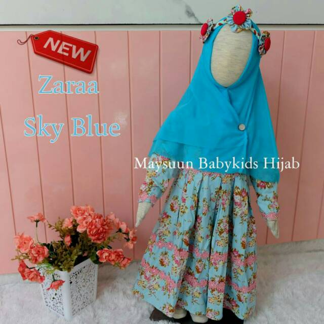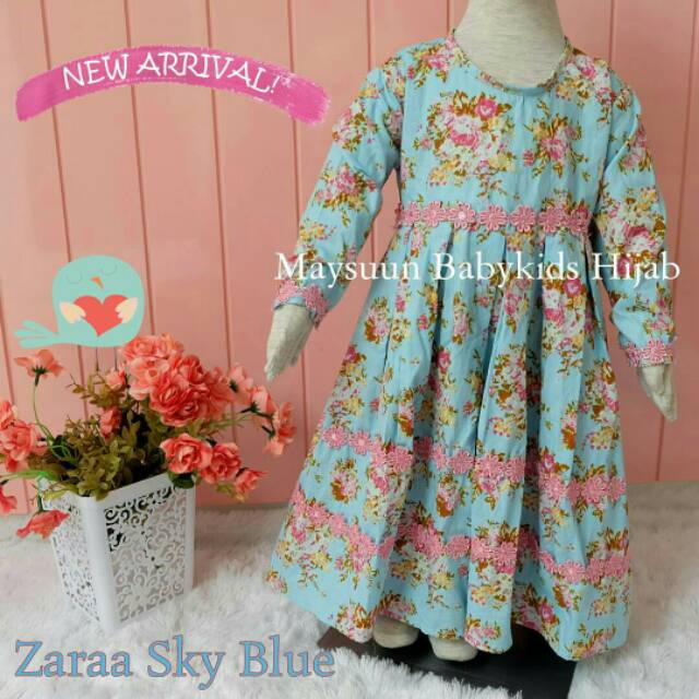 Zaraa Sky Blue Biru Langit Gamis Bayi Anak Katun Jepang Original Maysuun
