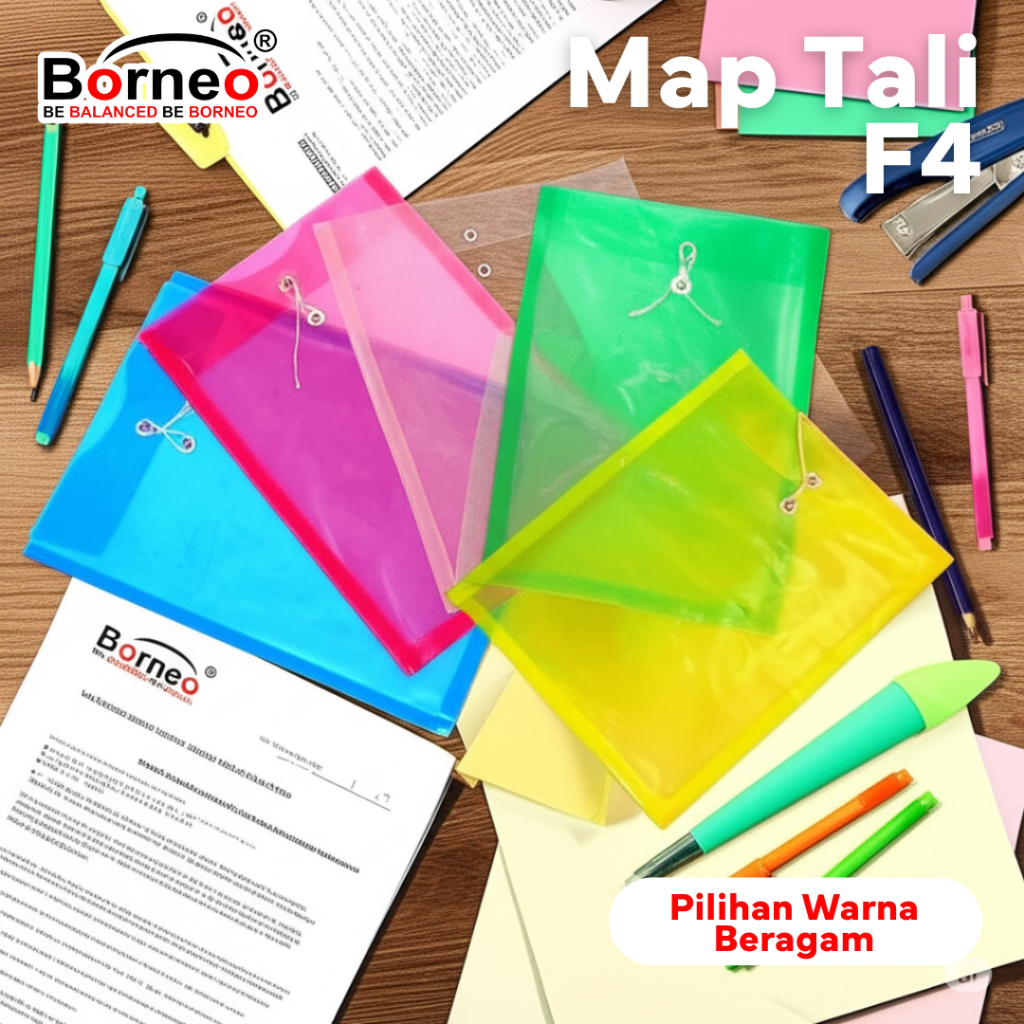 Map Tali Borneo F4 Plastik Folio Warna Warni 1Pcs – Map Dokumen Tali – Map Plastik
