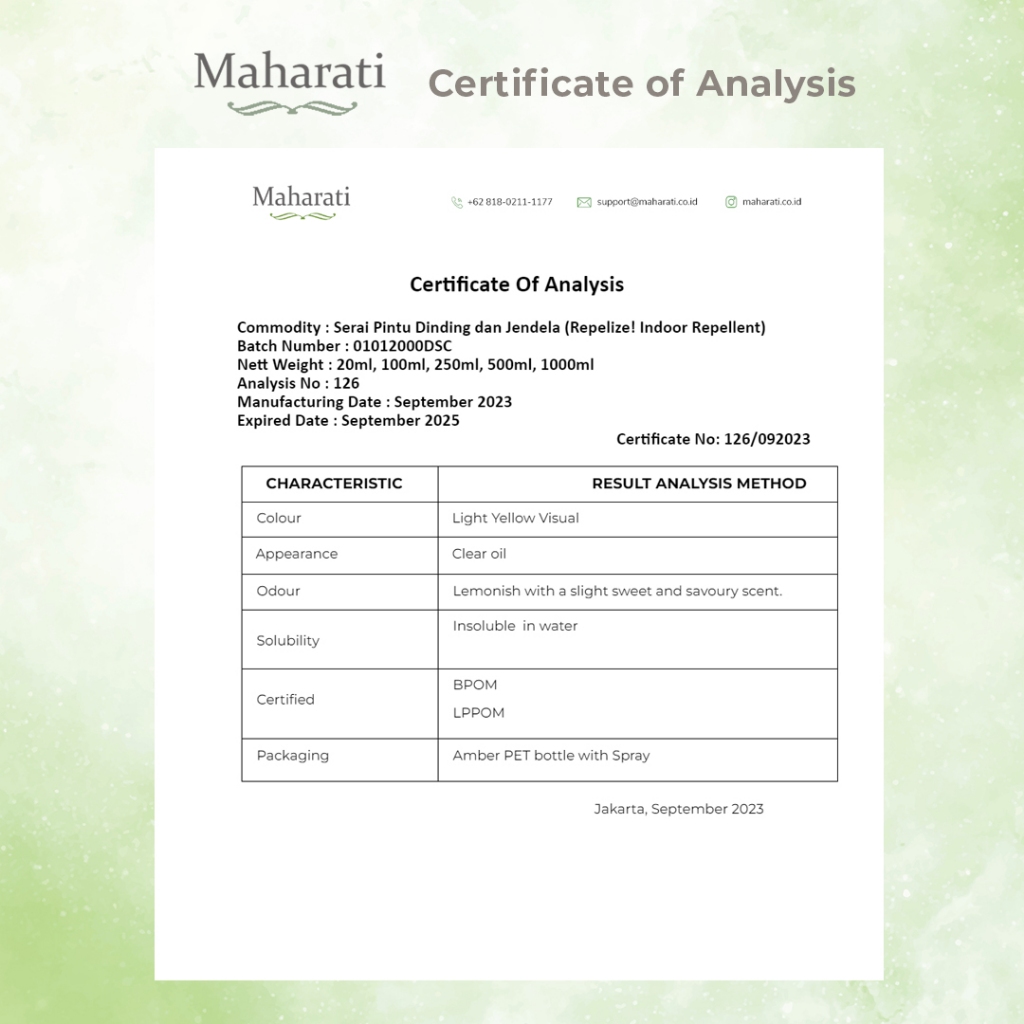 Maharati Serai Pintu Dinding & Jendela Bahan Alami Pengusir Serangga Multifungsi Nyamuk, Cicak, Kecoa, Semut | Non Pestisida | Aman Untuk Bayi dan Ibu Hamil | Aman Dihirup