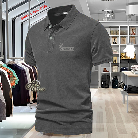 Baju Distro Style Polo Kerah Cress Garis Text Silver Kaos Polo T Shirt Denim Premium Quality Atasan Pria Wanita Promo Termurah