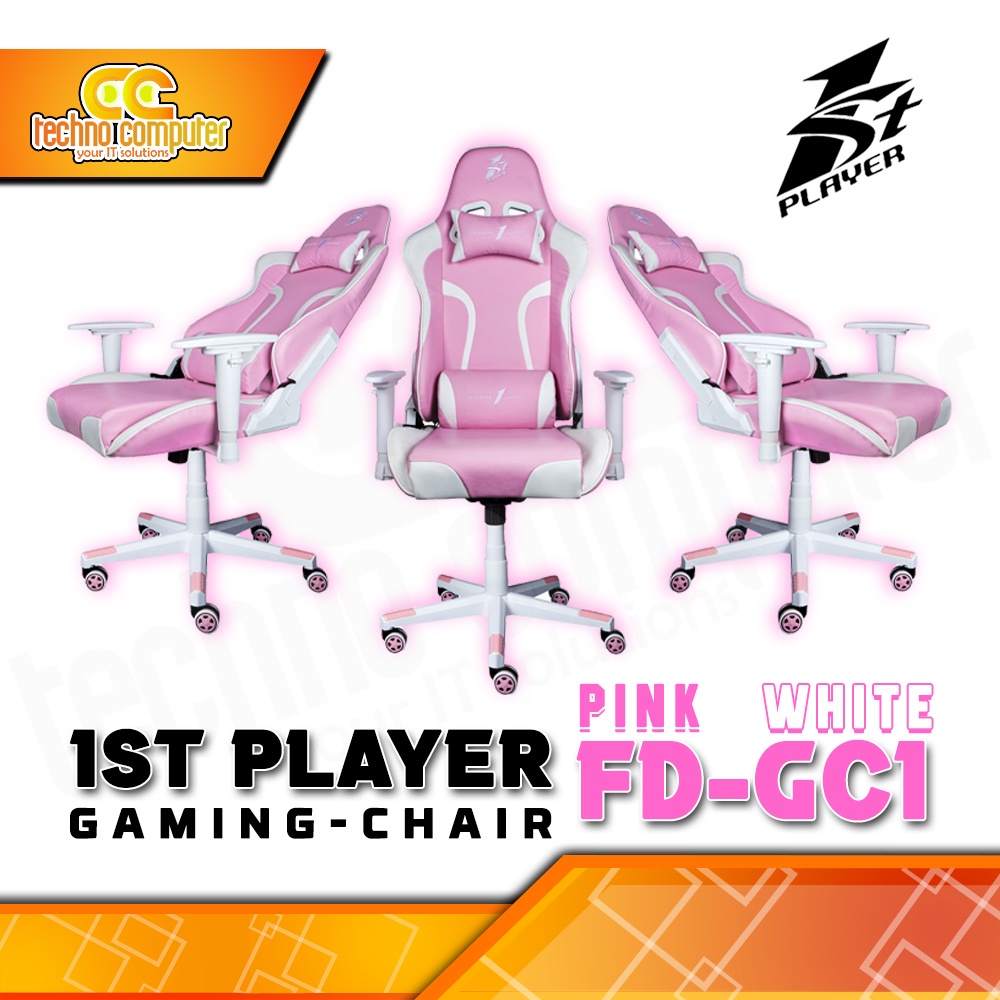 KURSI GAMING 1ST PLAYER FD-GC1 White & Pink - 3D Armrest / 1ST Player Gaming Chair