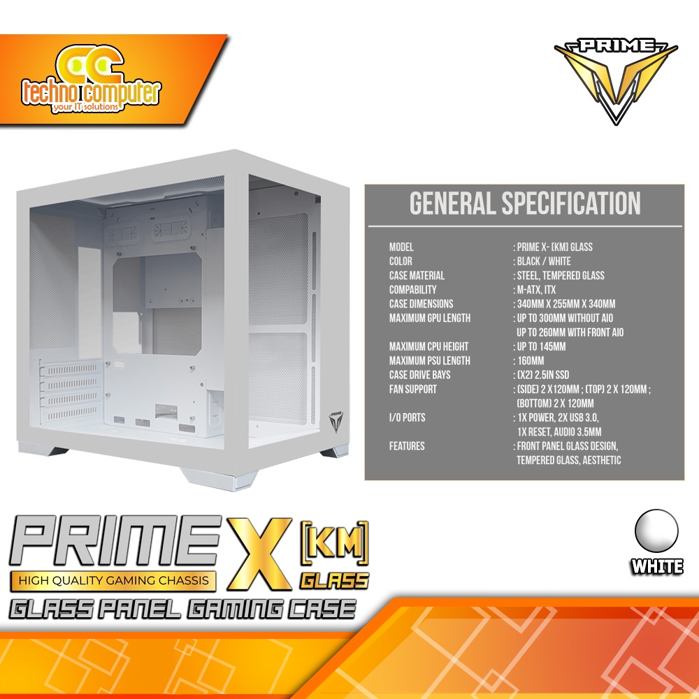 CASING PRIME GAMING X-[KM] Glass White - mATX Case Tempered Glass