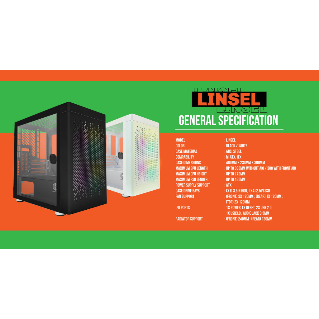 CASING CUBE GAMING LINSEL - Mini Tower mATX Case Tempered Glass (Free 2x RGB Fan)