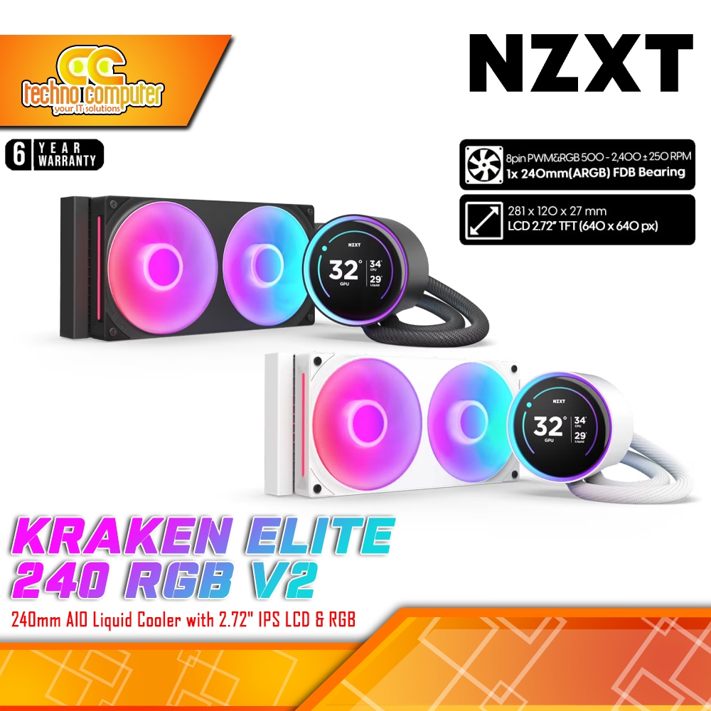 CPU COOLER NZXT KRAKEN ELITE 240 RGB V2 - 240mm AIO Liquid Cooler with LCD Display and RGB