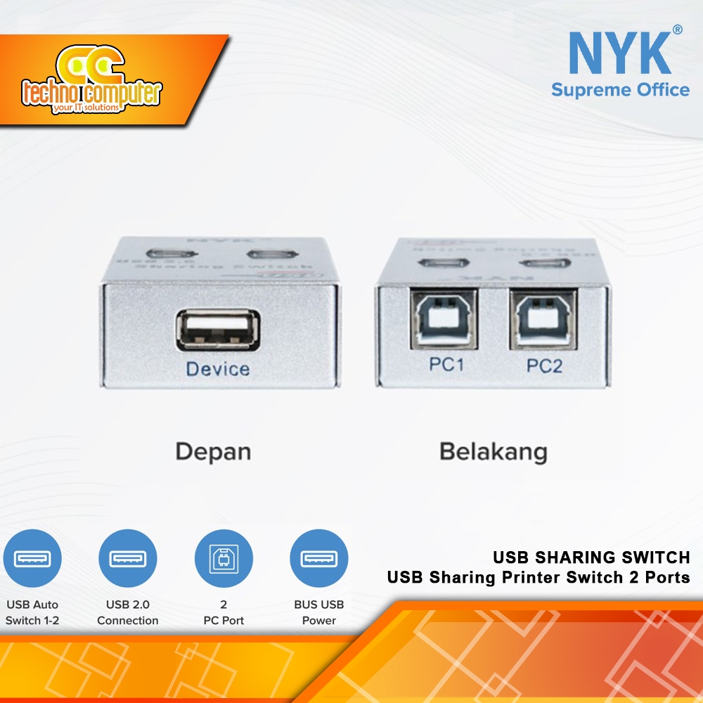 NYK USB SHARING SWITCH (2 in 1 out) USB Sharing Printer Switch 2 Ports - UY-02A