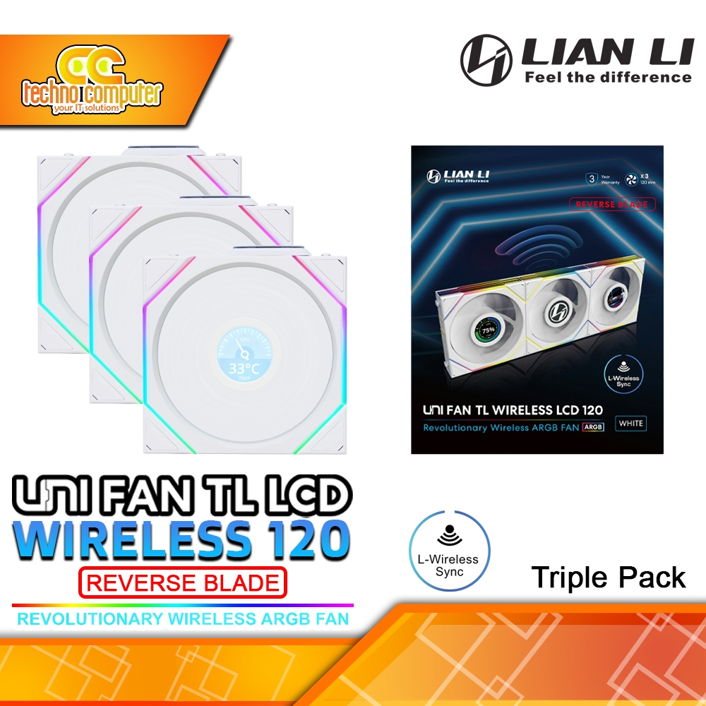 FAN CASING LIAN LI UNI FAN TL LCD 120 REVERSE BLADE Wireless - 120mm Triple Pack ARGB Fan