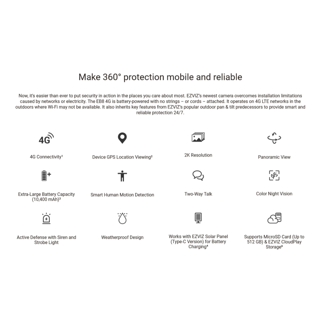 EZVIZ CS-EB8 3MP 4GA with Solar Panel OUTDOOR Smart Pan/Tilt 4G Battery Camera CCTV
