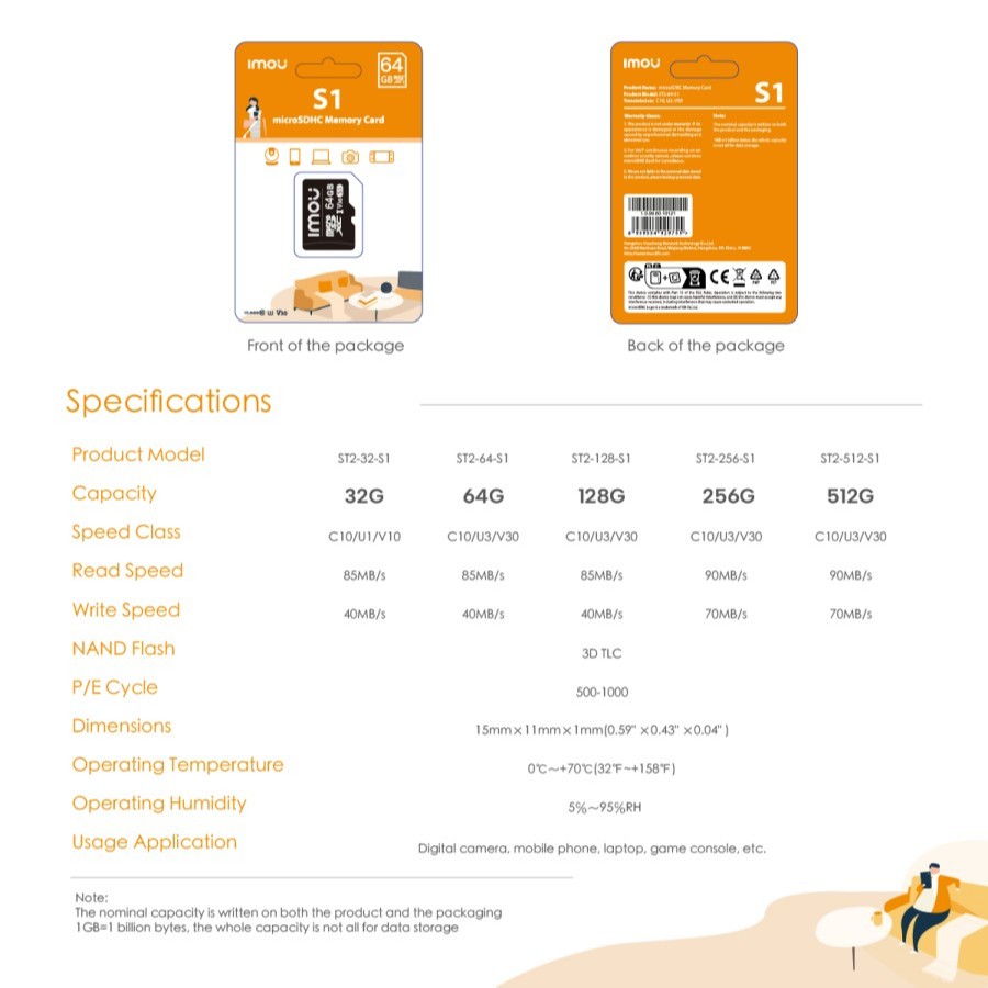 MEMORY CARD IMOU microSDXC 128GB C10/U3/V30 95MB/s R (ST2-128-S1)