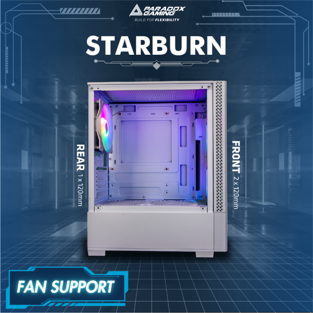CASING PARADOX GAMING STARBURN - Mid Tower mATX Case Tempered Glass (Free 3x Fix RGB Fan)