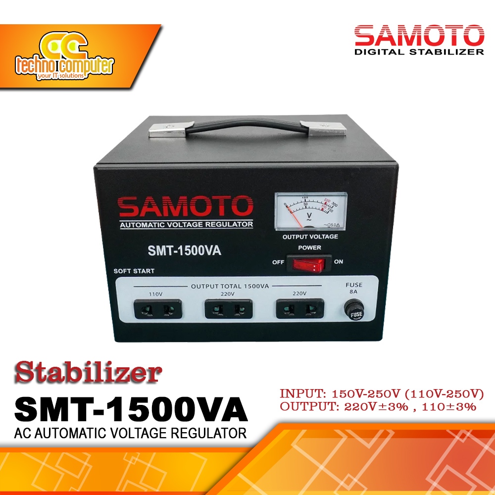 STABILIZER SAMOTO SMT-1500VA SINGLE PHASE STAVOLT SERVO MOTOR