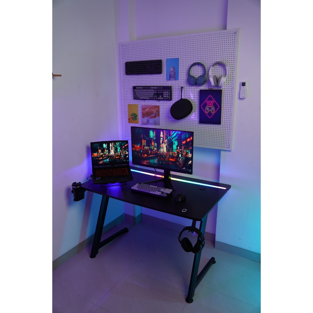 MEJA GAMING REXUS GALA V2 RXD-145 GAMING DESK With Headphone Hook & Cup Holder - BLACK