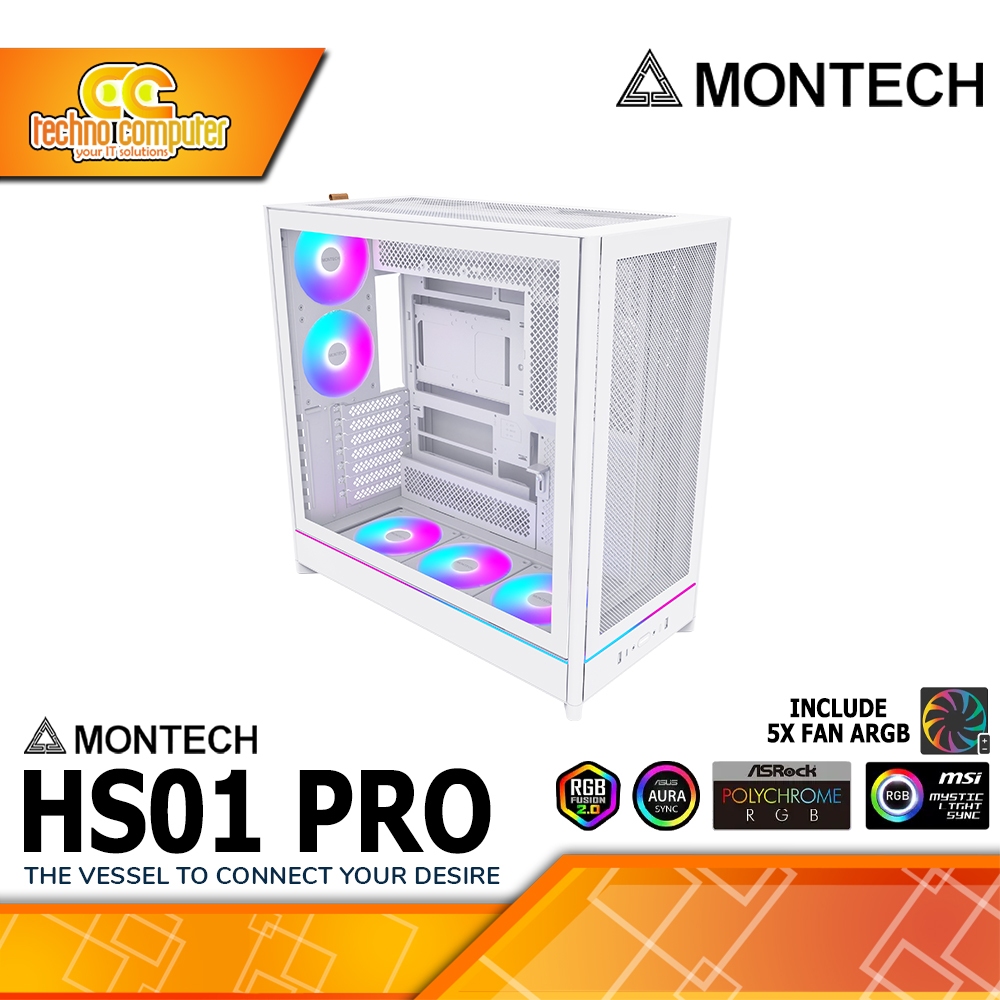 CASING MONTECH HS01 PRO Mesh - Mid Tower ATX Case Tempered Glass (Free 5x ARGB Fan)