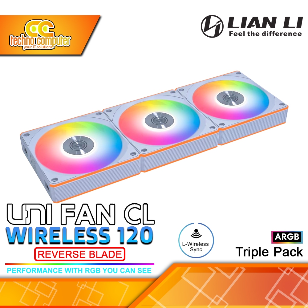 FAN CASING LIAN LI UNI FAN CL Wireless 120 REVERSE BLADE - 120mm Triple Pack ARGB Fan with Controller