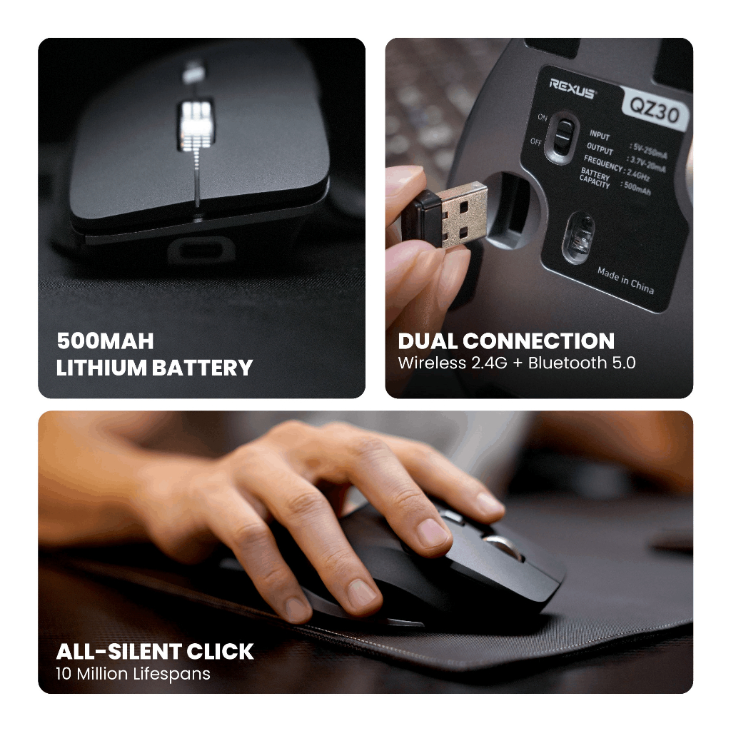 REXUS Flow QZ30 Ergonomic Silent Click Wireless - Office Mouse Wireless