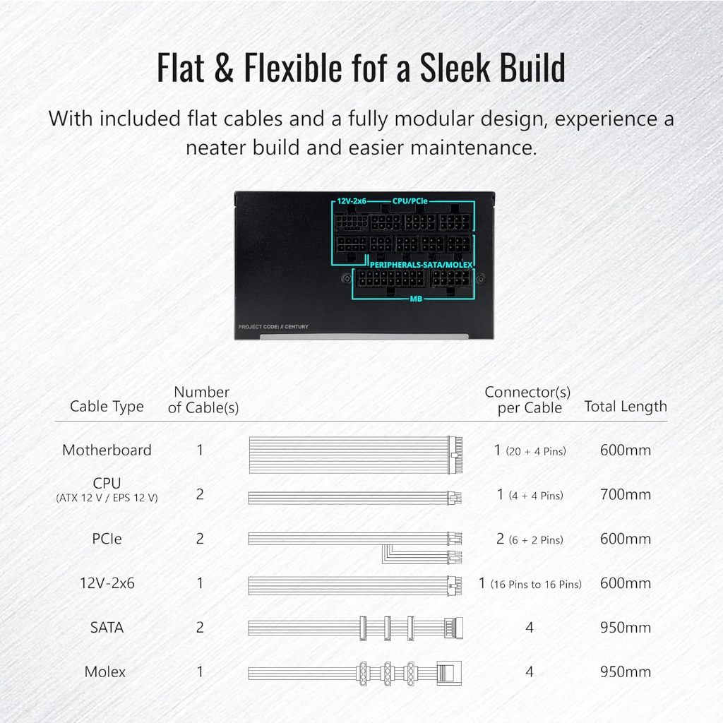 POWER SUPPLY MONTECH Century II 850W 80+ Gold ATX 3.1/PCIe 5.1 - Full Modular