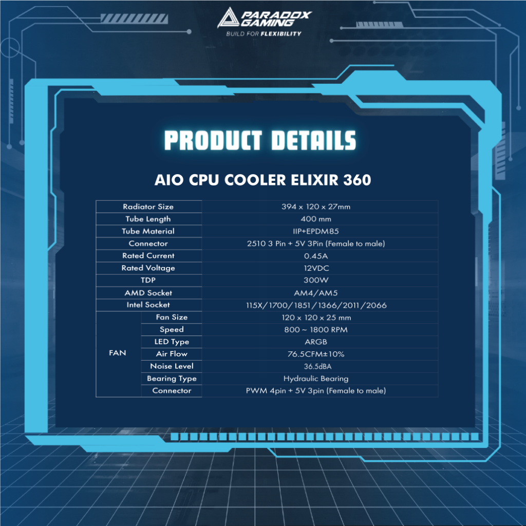 CPU COOLER PARADOX GAMING HYPERSONIC ELIXIR 360 - 360mm AIO Liquid Cooler