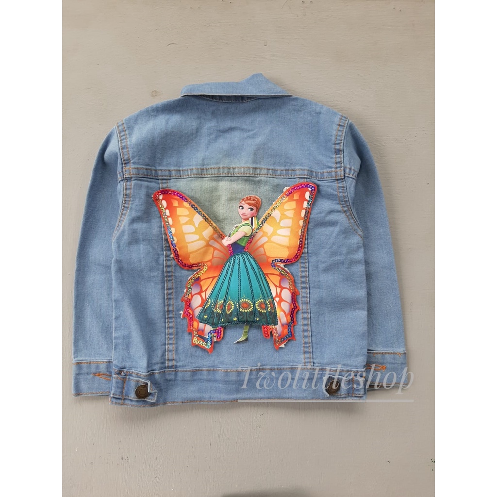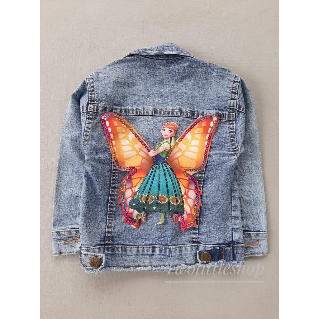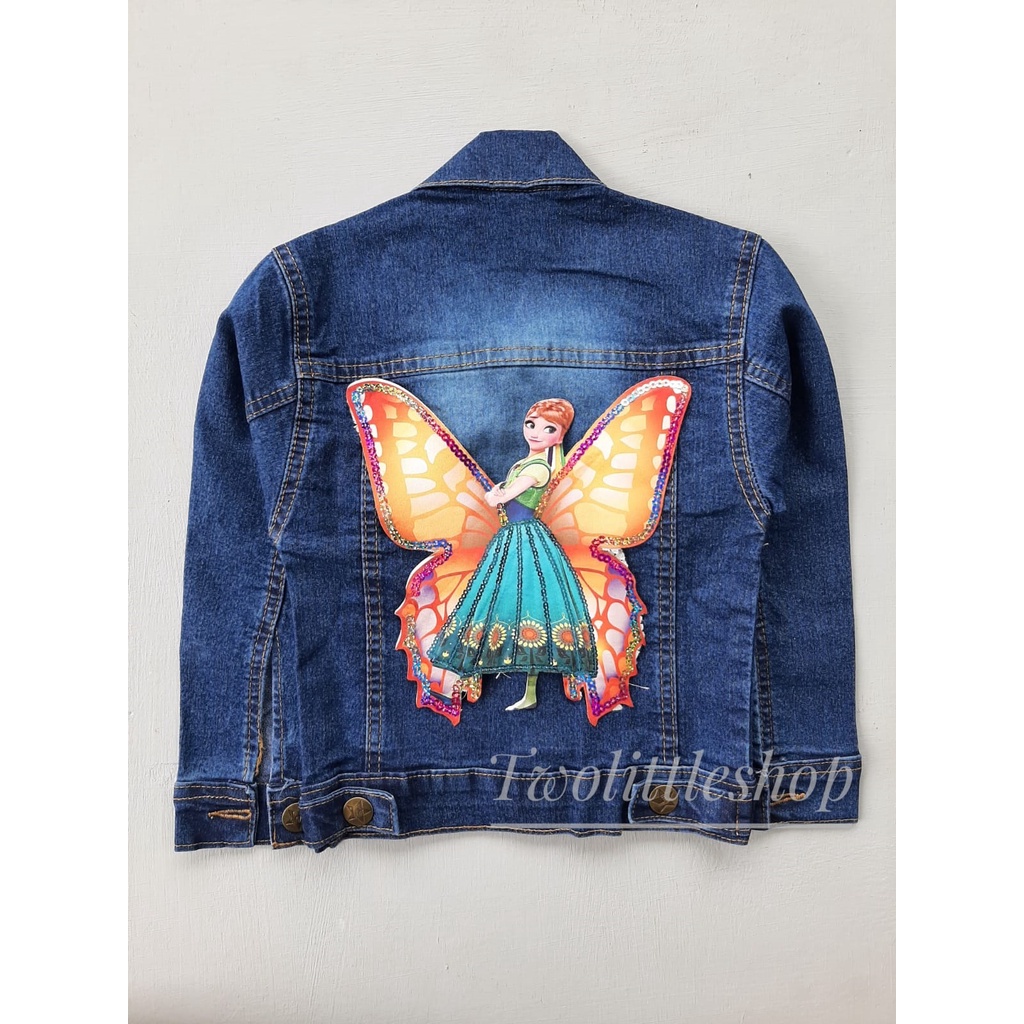 JAKET JEANS ANAK BLUE SANDWASH, BLACK SANDWASH, BIOBLITZ, BIOWASH MOTIF KUPU-KUPU