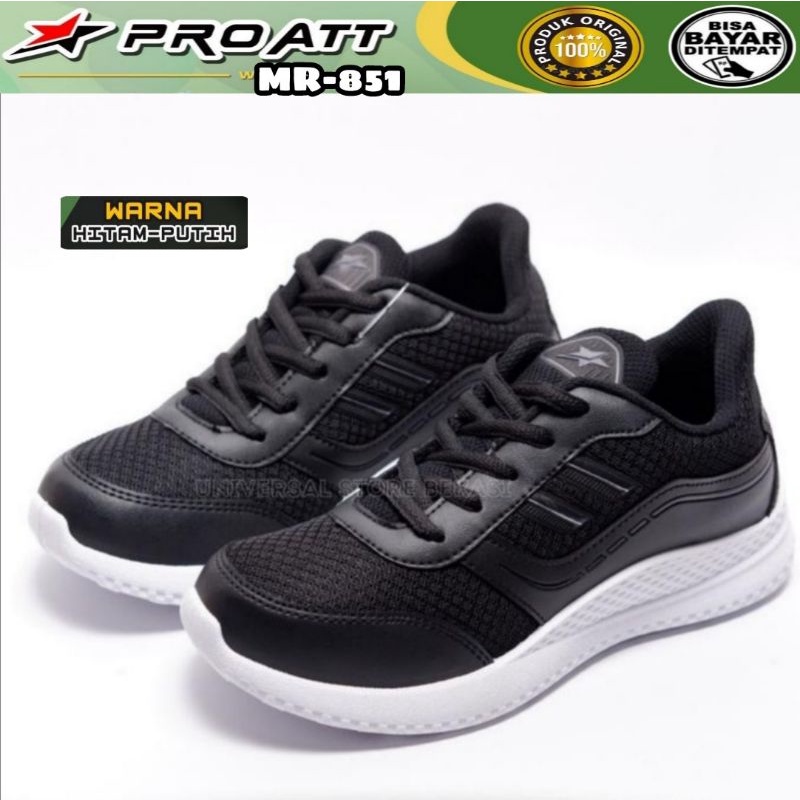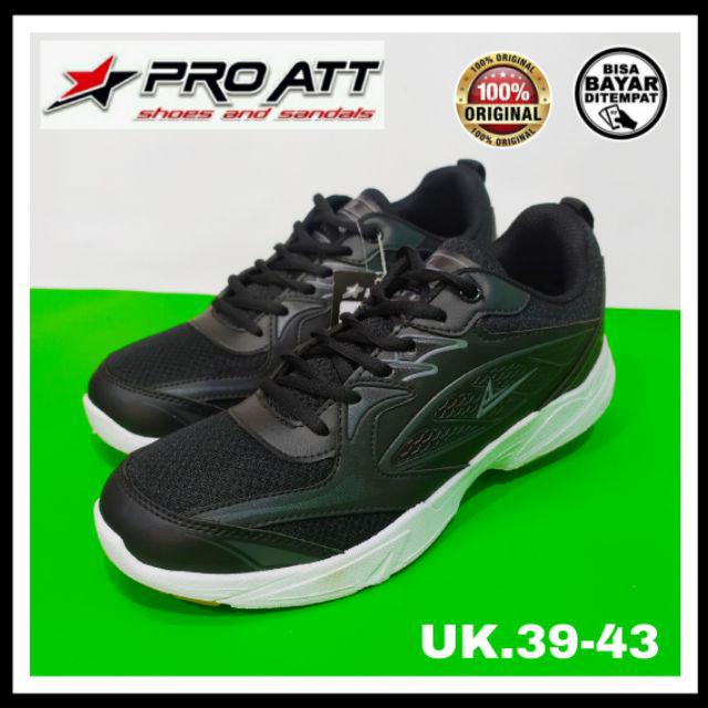 ProAtt Sepatu Sneakers Cowok Hitam Putih Olahraga Sport Kerja Sekolah Pro Att Original Size 39 sd 43