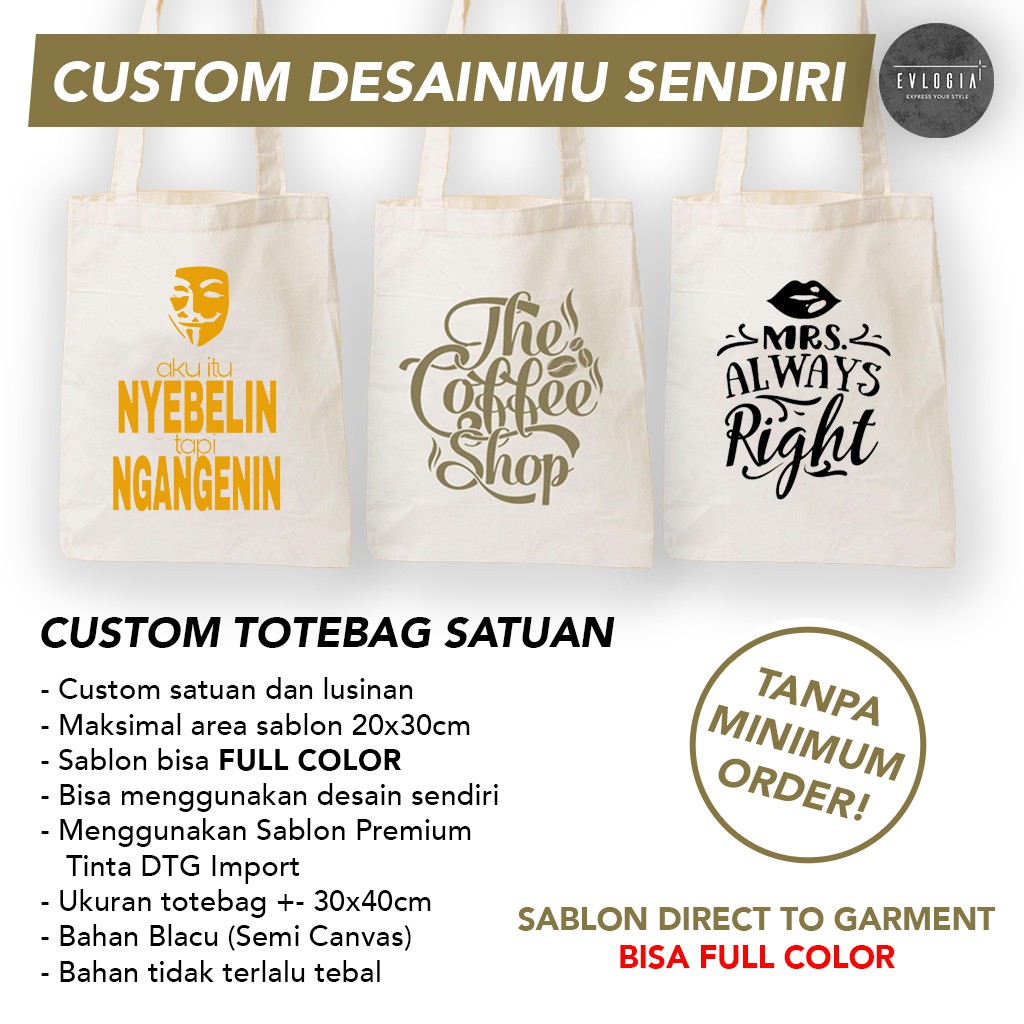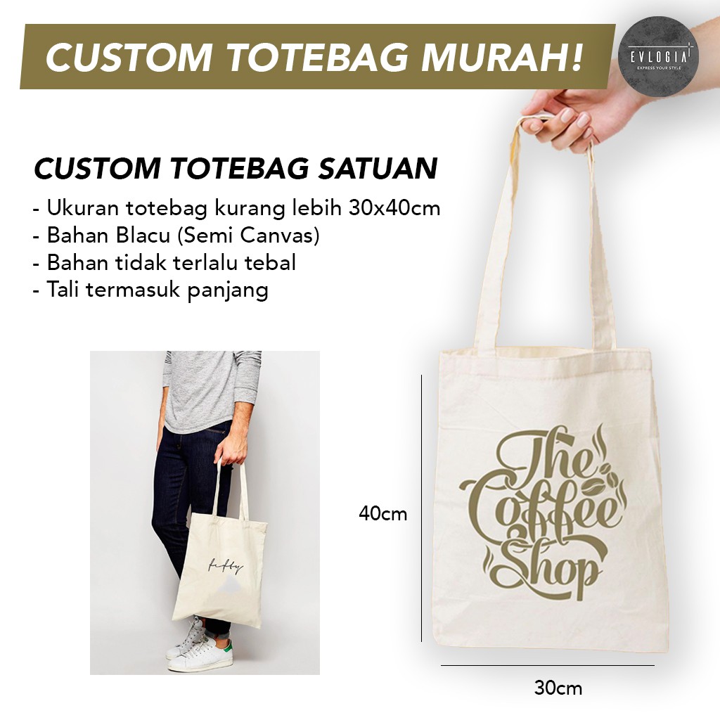 Custom Satuan Totebag Goodie Bag Tas Kanvas Promosi Premium Sablon Polyflex Desain Bebas!