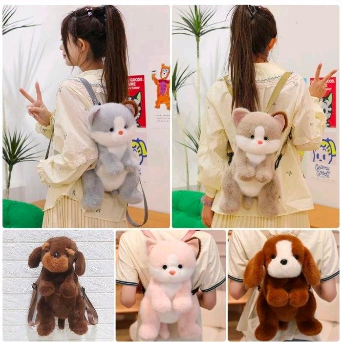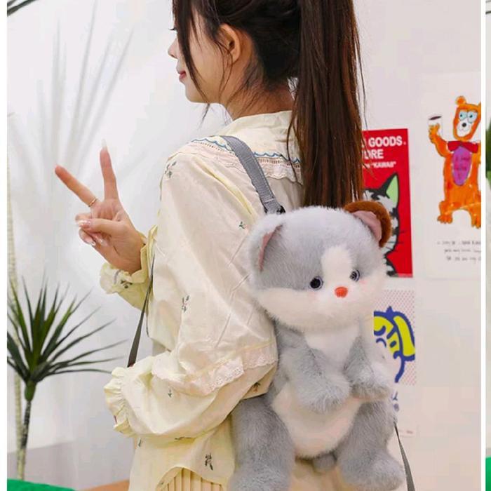 Bagpack Boneka Cute Animal Dog Cat Tas Ransel Boneka Tas Boneka - Cat Grey