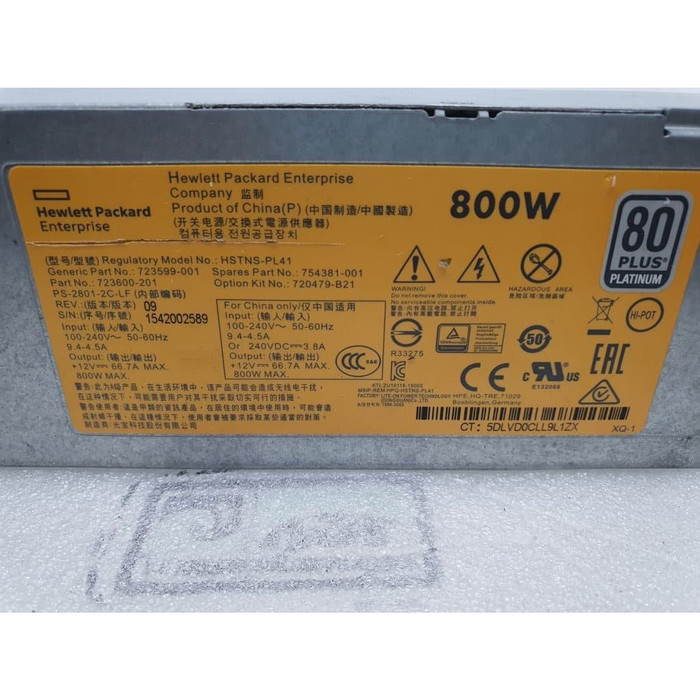 PSU HP 723600-201 800 WATT FLEX SLOT PLATINUM DL360 DL380 ML350 GEN9.