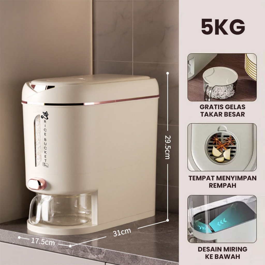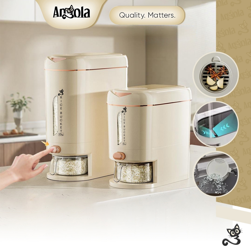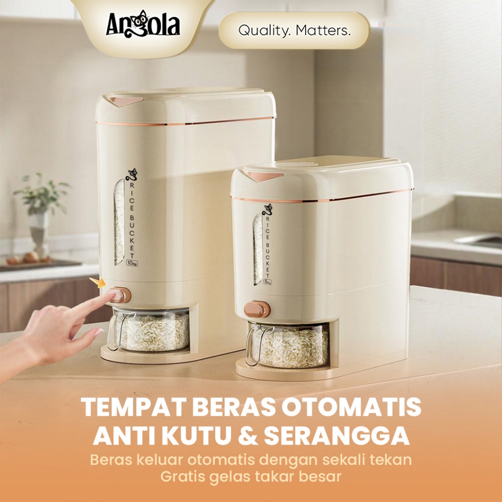 ANGOLA Dispenser Beras Otomatis 5-10KG E29-E31 Tempat Penyimpanan Beras Food Grade Anti Kutu