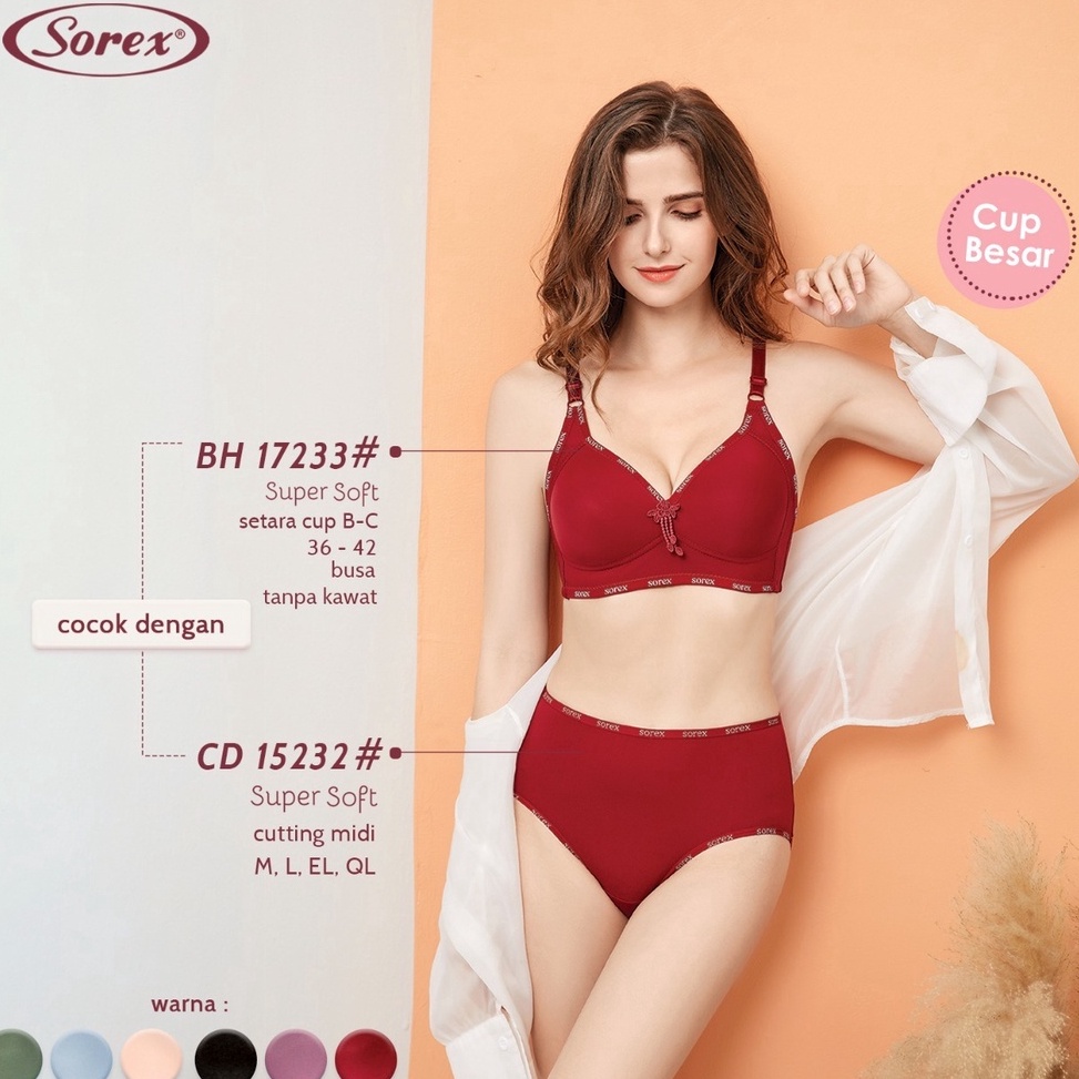 ART P15A Sorex 17233 Bra BH Tanpa Kawat Busa Tipis Super Soft Cup Besar B C Kait 3