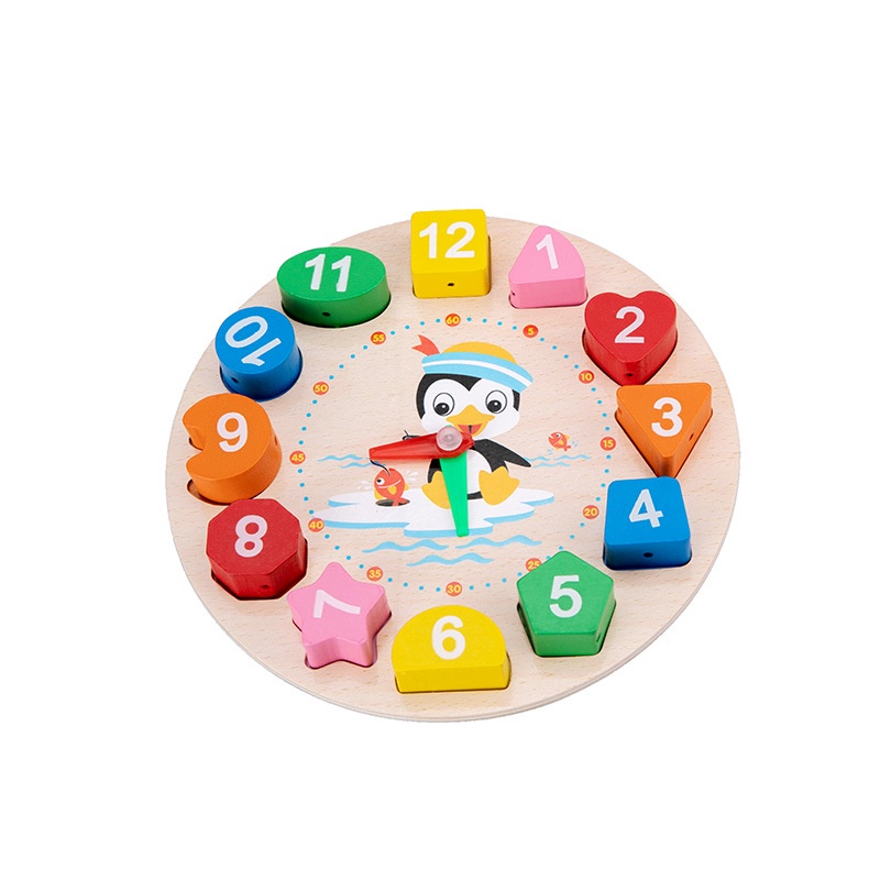 Penguin Beaded Clock mainan edukasi jam Penguin dan meronce/ jam kayu / jam geometri/ puzzle bentuk/ mainan kayu