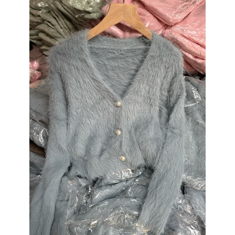 Tshirtgiants.id / Cardigan Rajut Bulu Halus 1376 Fuzzy Semicrop Outer Knit - Wanita - Panjang, Kancing, Baju, Atasan, Kardigan, Knitwear