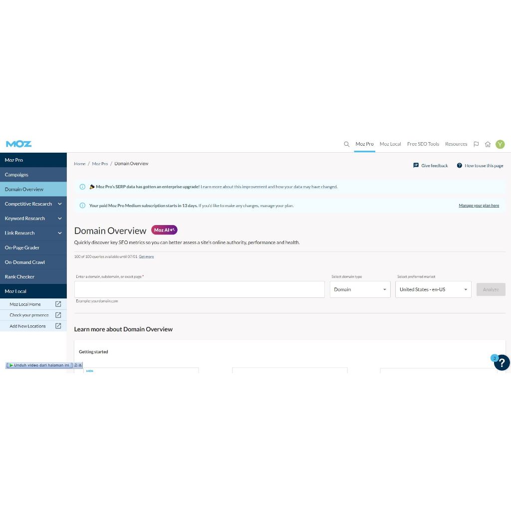 Moz Pro Private, Aman Masa Aktif 30 Hari Private Login