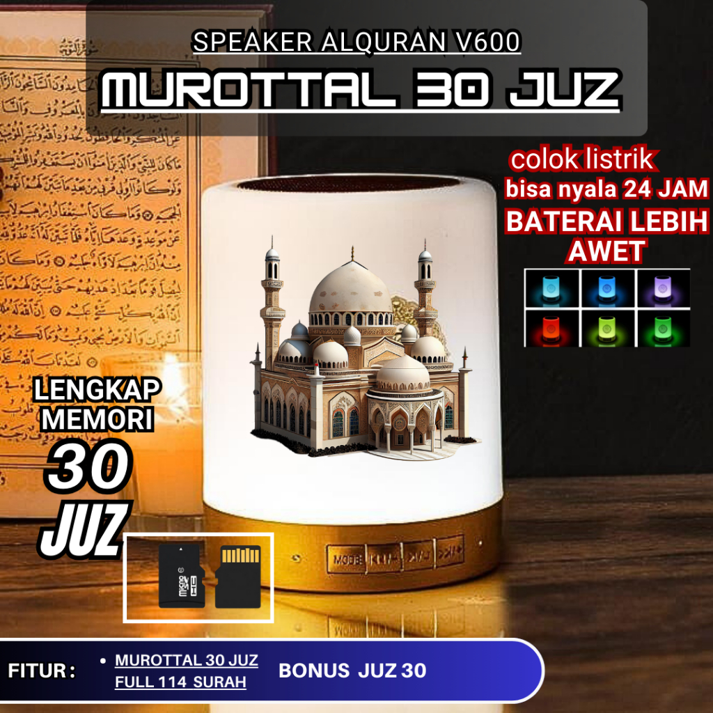 SPEAKER MUROTTAL ALQURAN LED LAMPU TIDUR 24 JAM 30 JUZ
