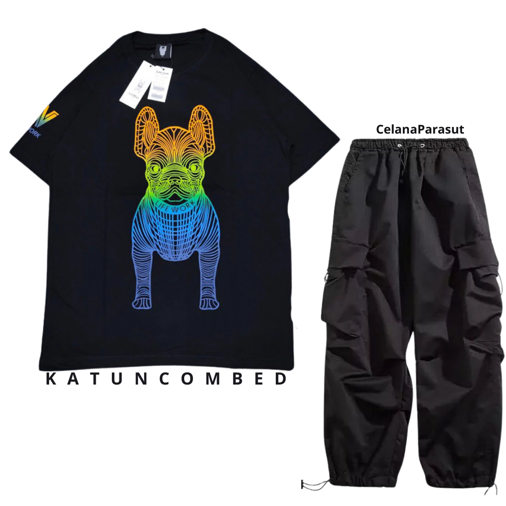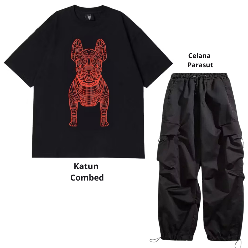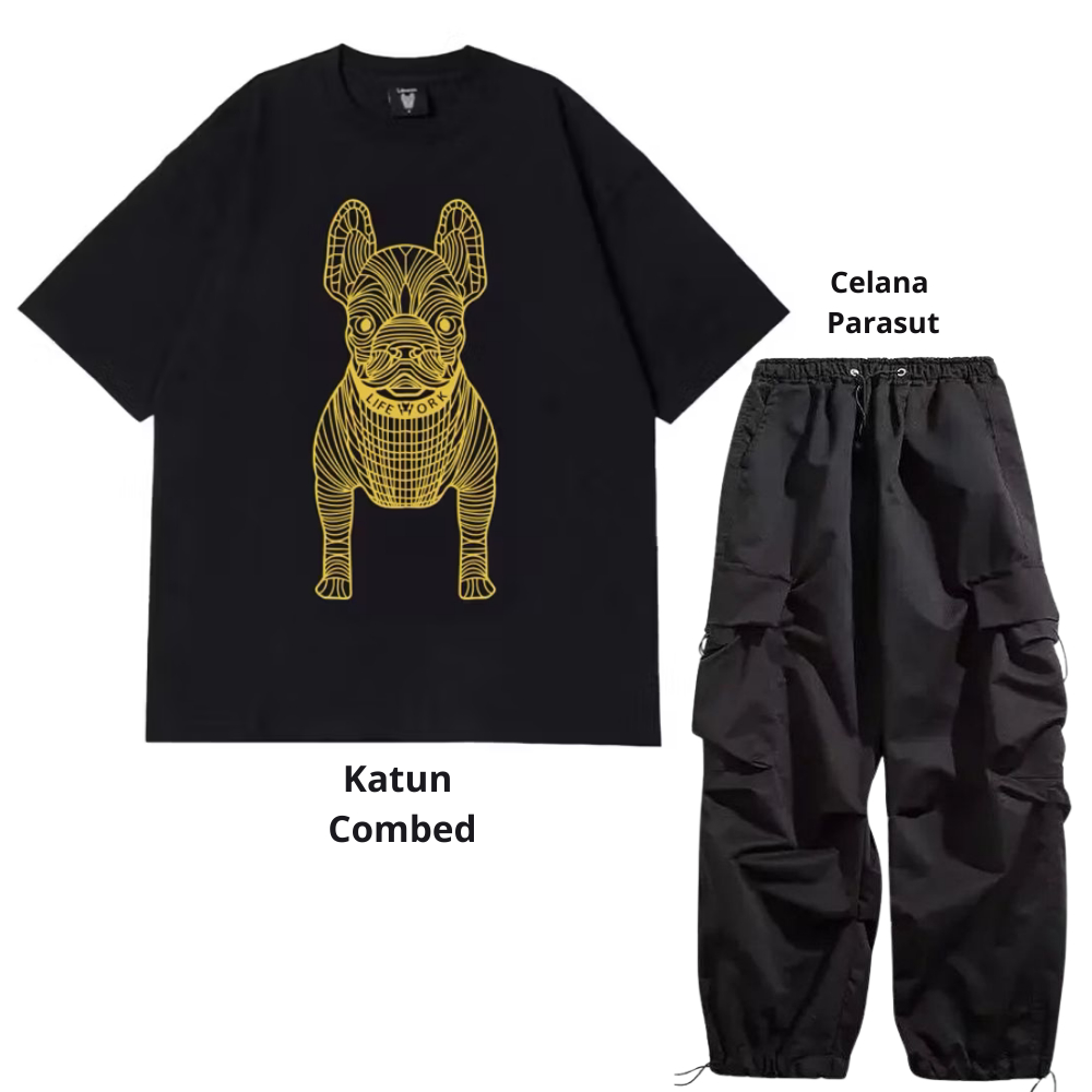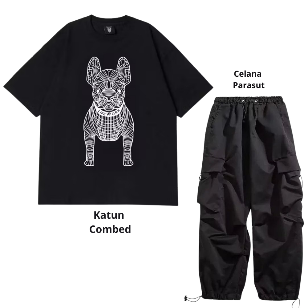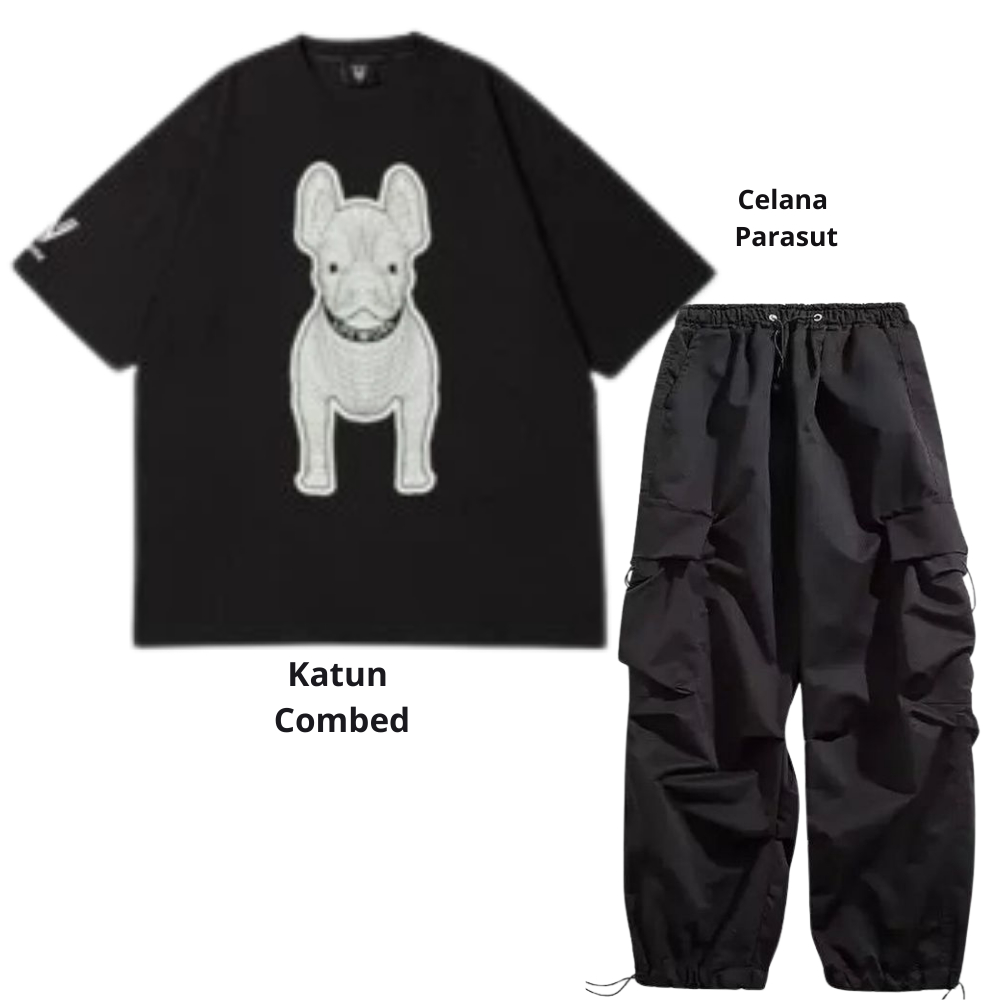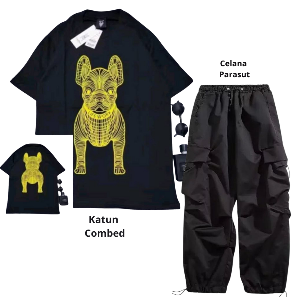 Setelan pria satu set fashion outfit pria 1 set lengkap keren Baju setelan pria Kaos Oversize Pria kaos hitam