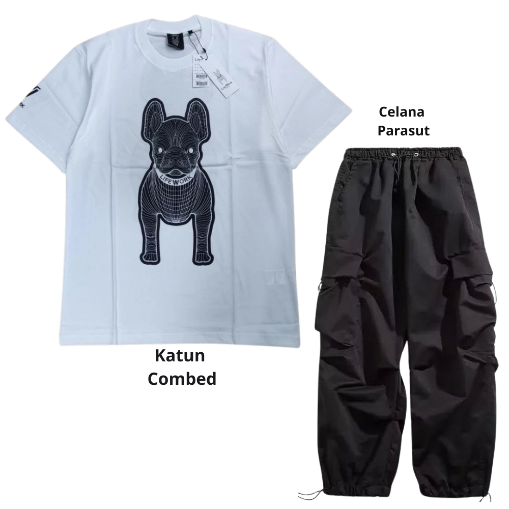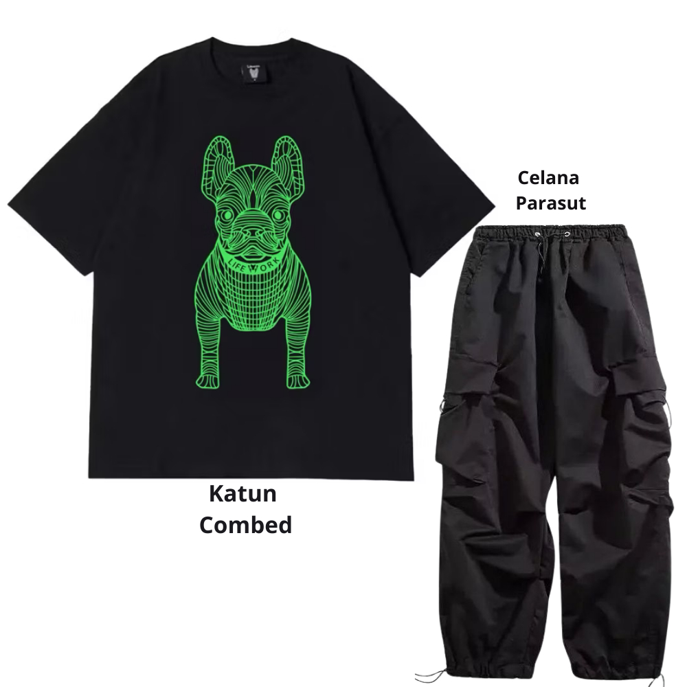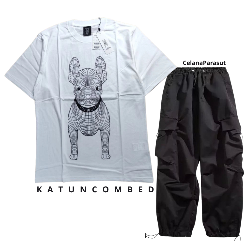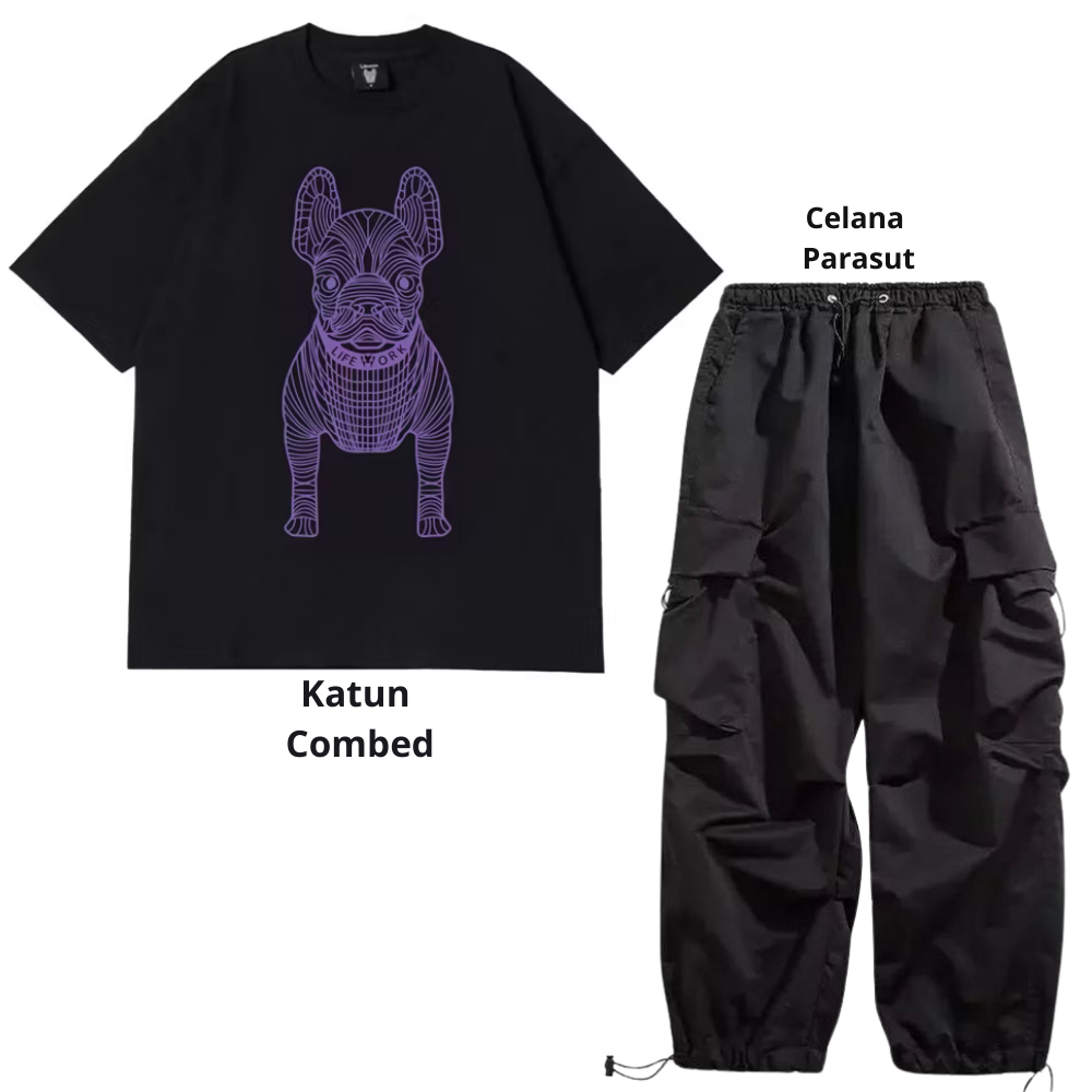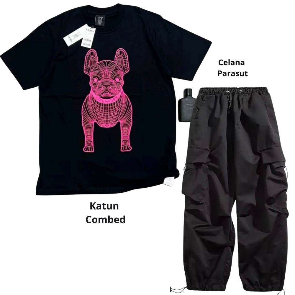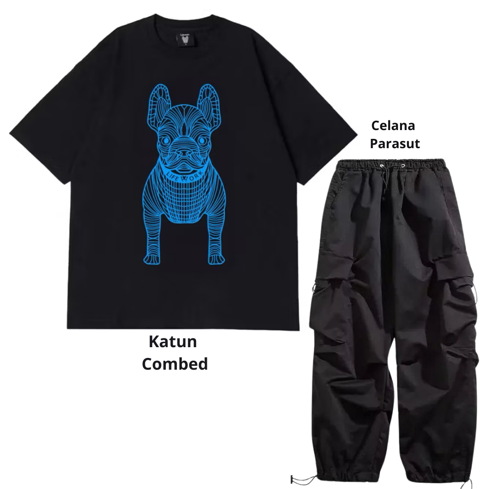 Setelan pria satu set fashion outfit pria 1 set lengkap keren Baju setelan pria Kaos Oversize Pria kaos hitam
