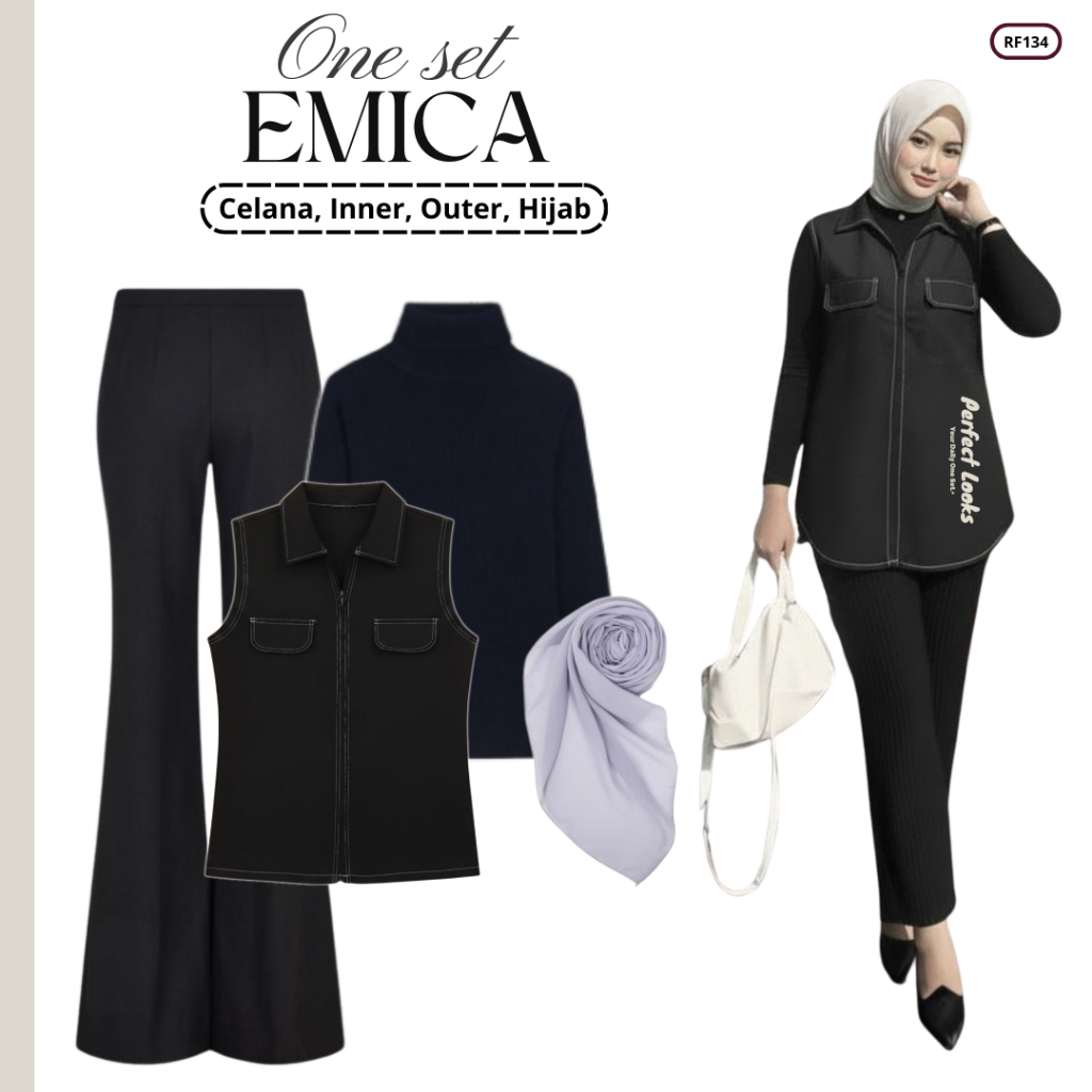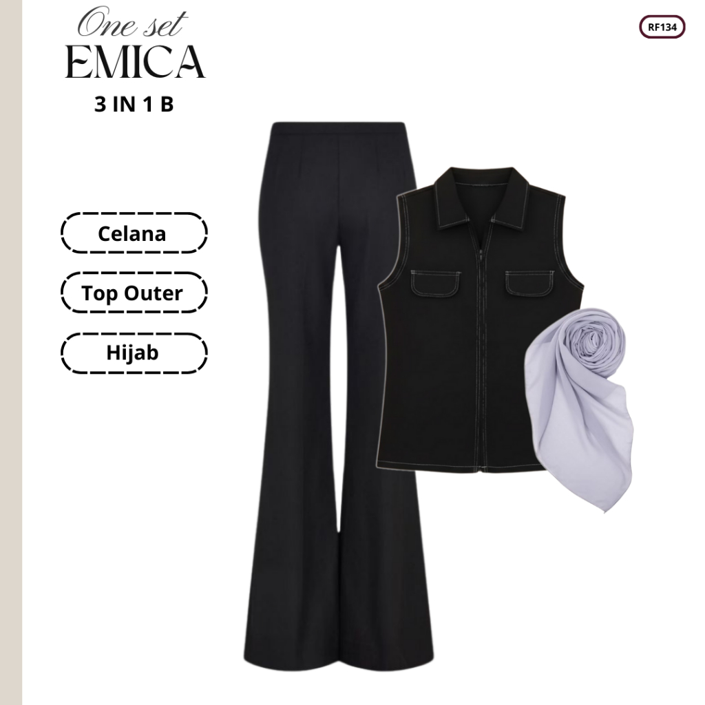 Setelan Outfit Lebaran Terbaru 2026 Idul Fitri | Celana, Inner, Outer, Hijab | One Set Remaja RF134