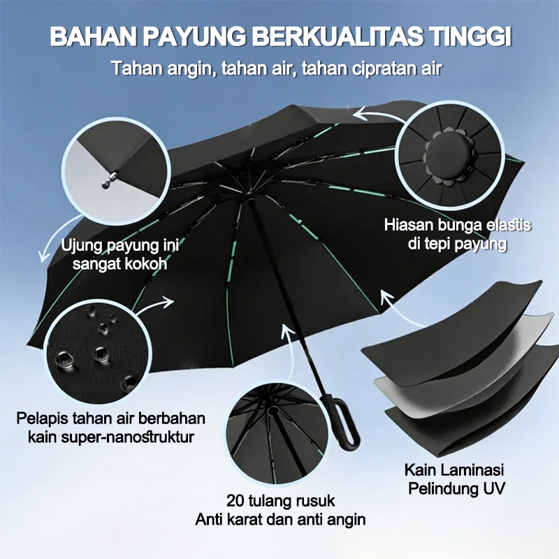 Xooqo6 Payung Lipat Otomatis Anti UV Payung Lipat Jumbo Besar Polos Anti Hujan Anti Panas Umbrella