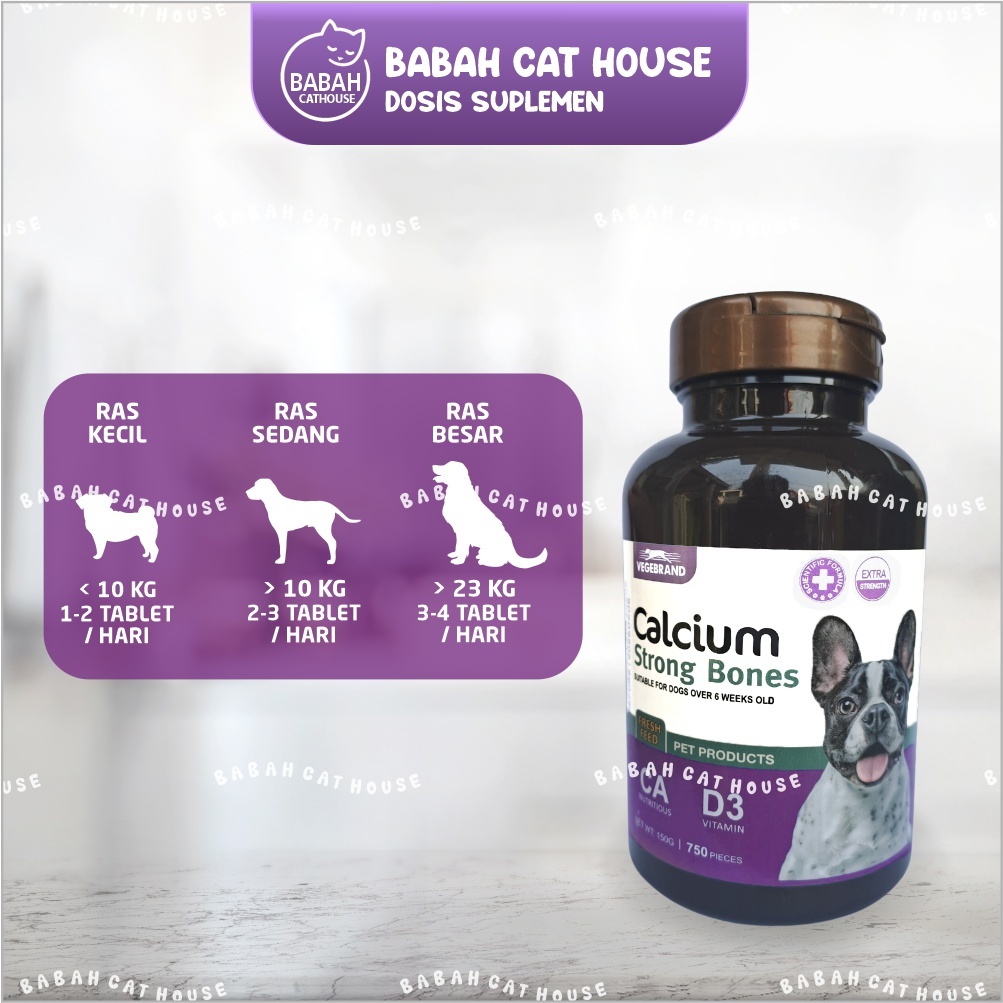 VEGEBRAND DOG CALCIUM STRONG BONES Calcium Suplemen Obat Vitamin Kalsium Kucing Anjing Kitten Puppy Cat Dog Vege Brand Kesehatan Tulang Dan Gigi Anak Untuk Vit Snack Hamil Masa Pertumbuhan Croissance