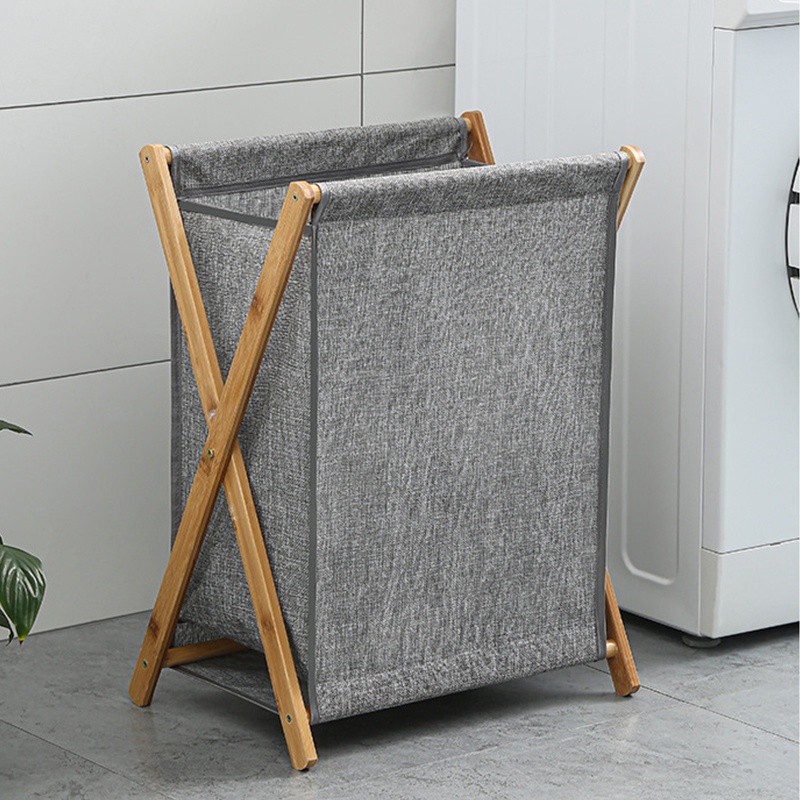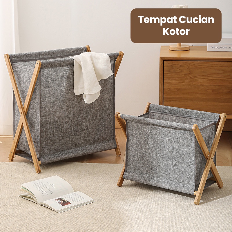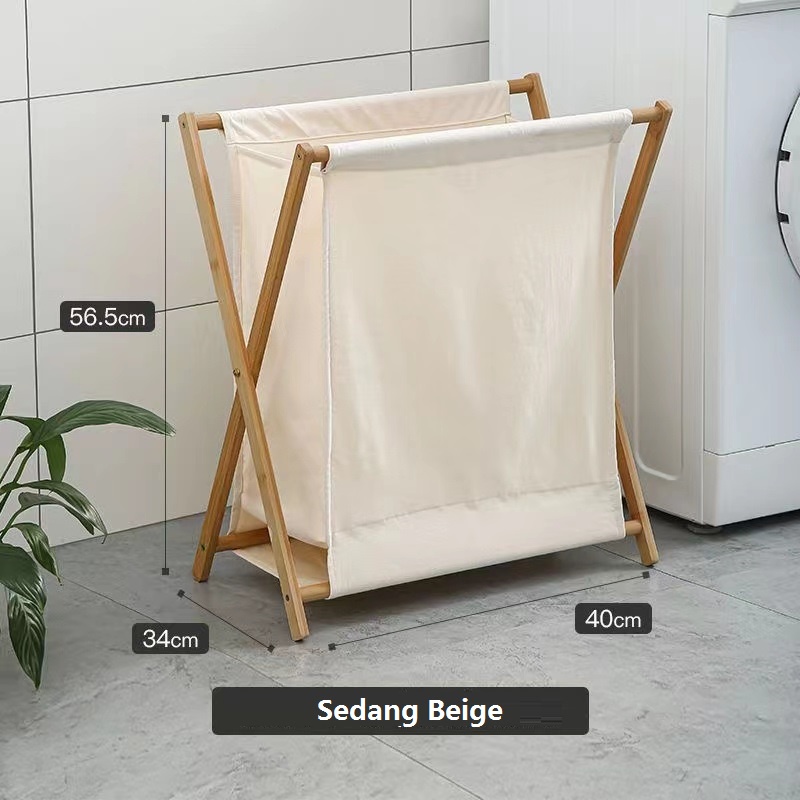 Starlight Laundry Bag Lipat Tempat Baju Kotor dengan Stand Kayu Basket Storage Baju Tempat Cucian Keranjang Baju Kotor HSB303