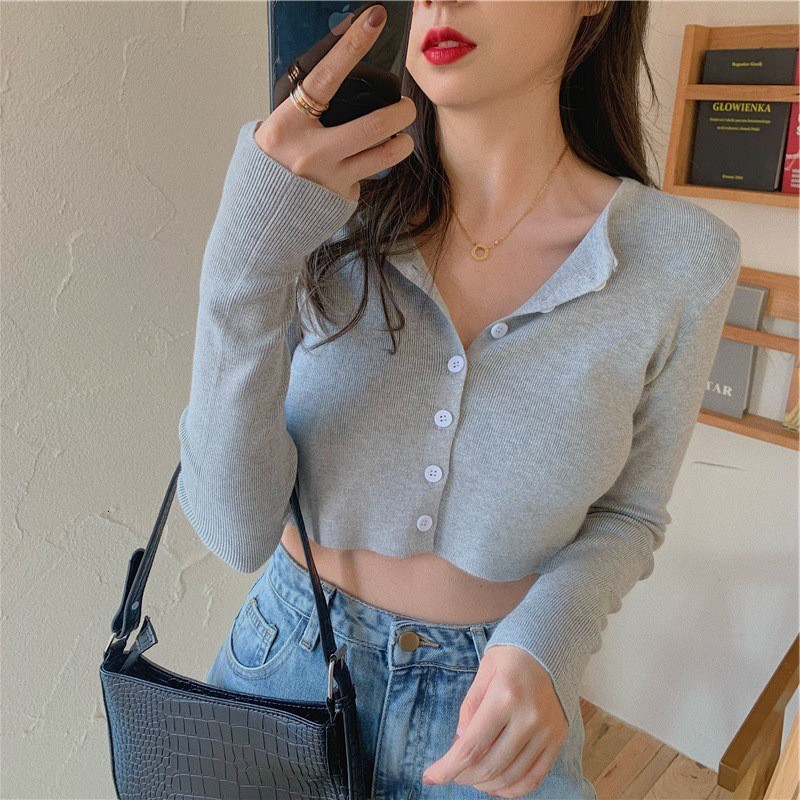 Cardigan Long Sleeve Button Knit Crop Top 2598