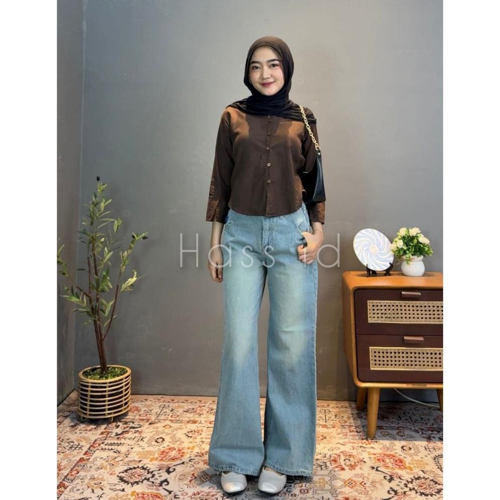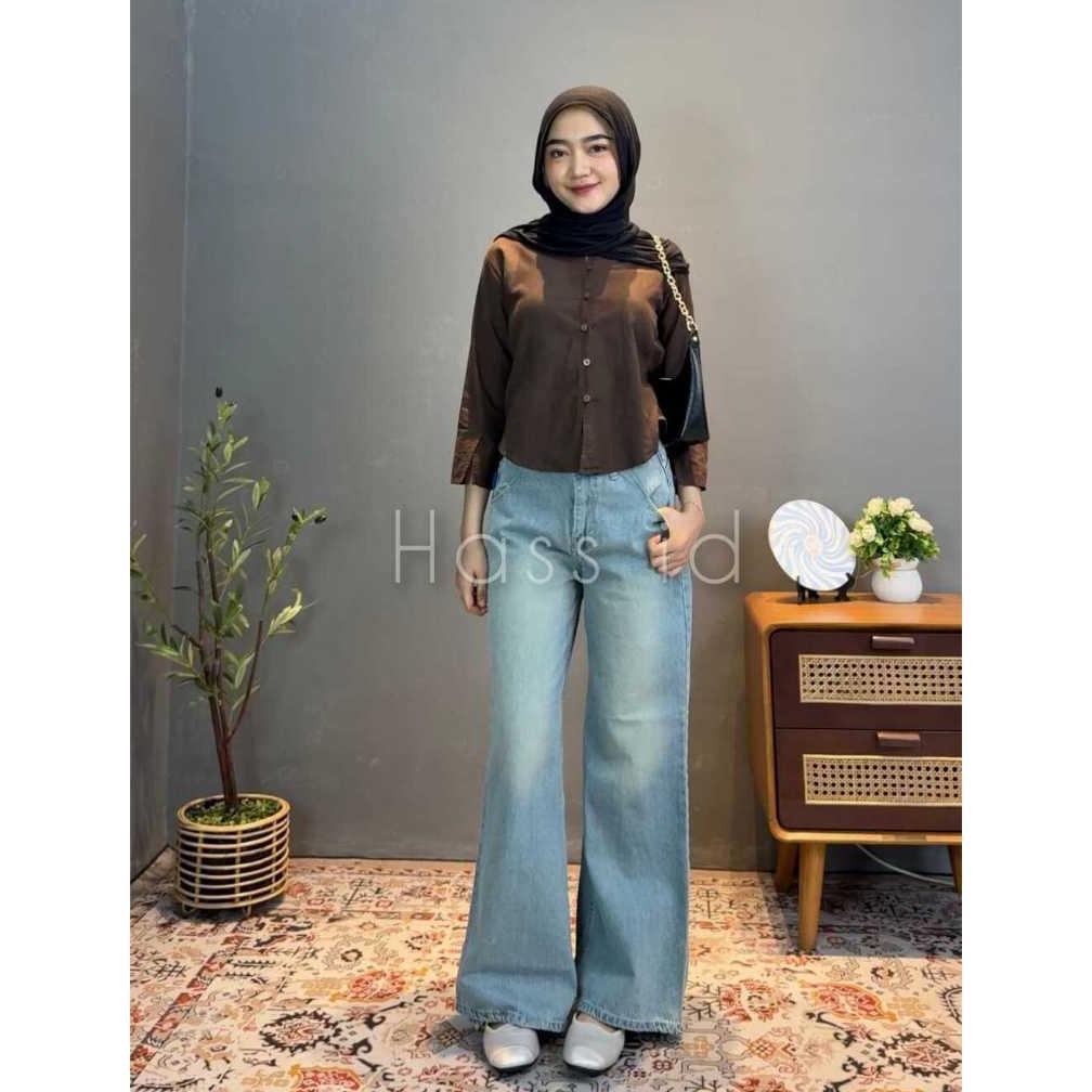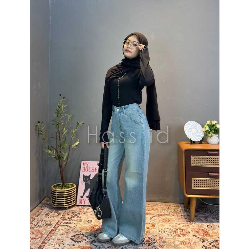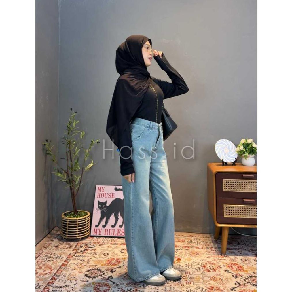 Sale Hass id Flare Jeans Wanita Vintage Retro Biru Blue Celana Denim Wanita Gaya Retro dengan Desain Flare Lebar - Flare Jeans Retro Vintage Biru - Celana Flare Jeans Wanita Wide Leg